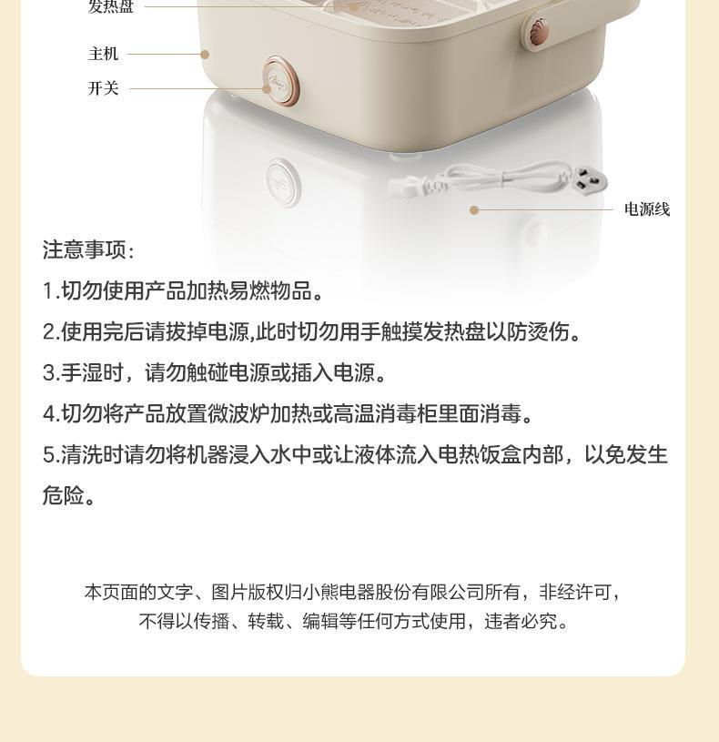 适用小熊电热饭盒加热便当盒上班族带饭神器保温饭盒可插电加热
