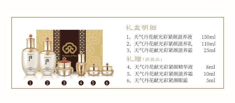 后(The history of whoo)后(WHOO)天气丹花献紧致六件套礼盒套装提拉紧致抗
