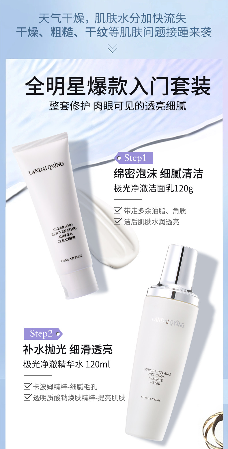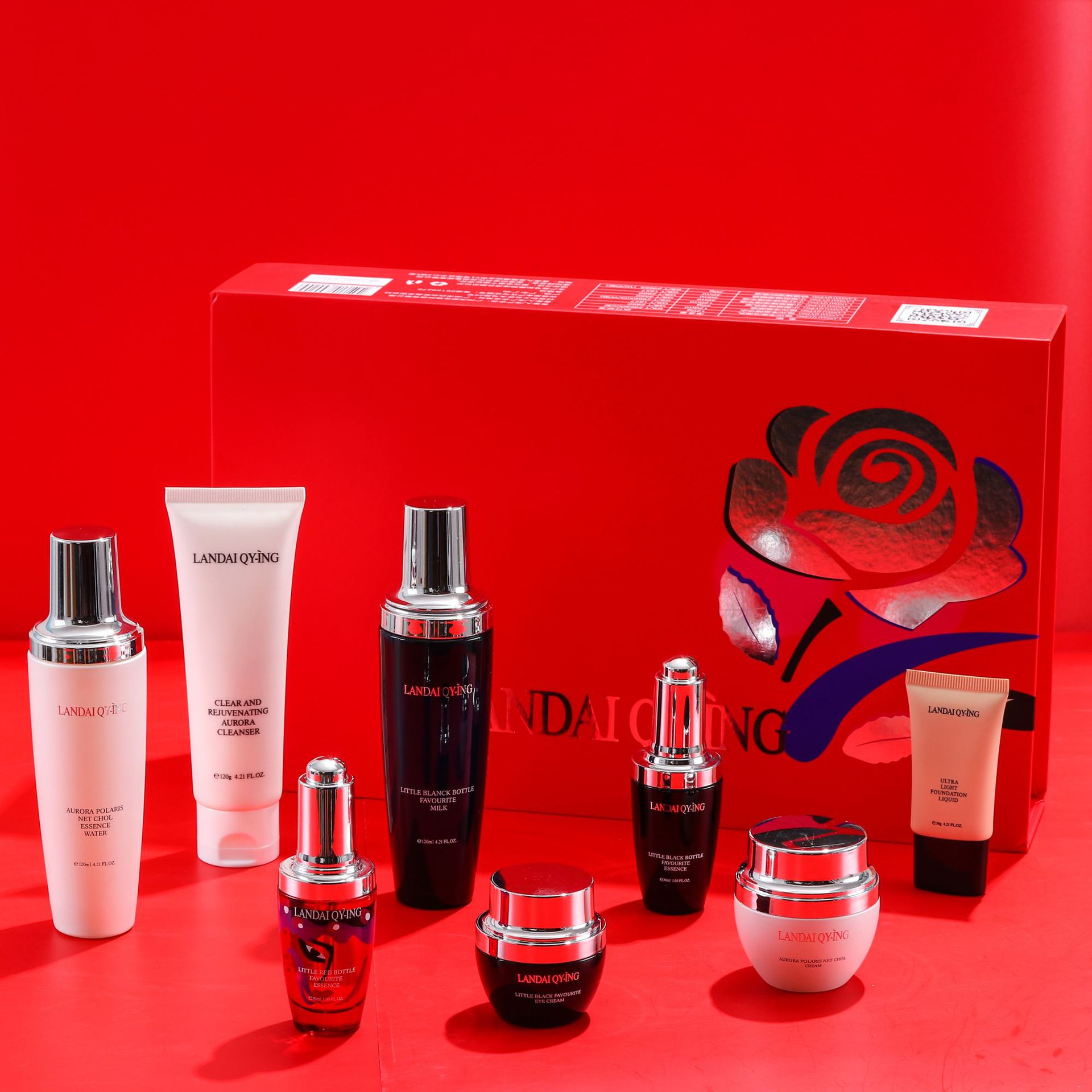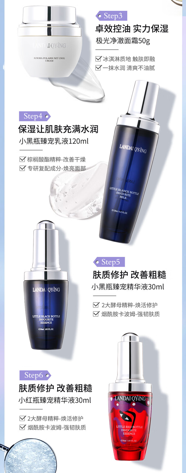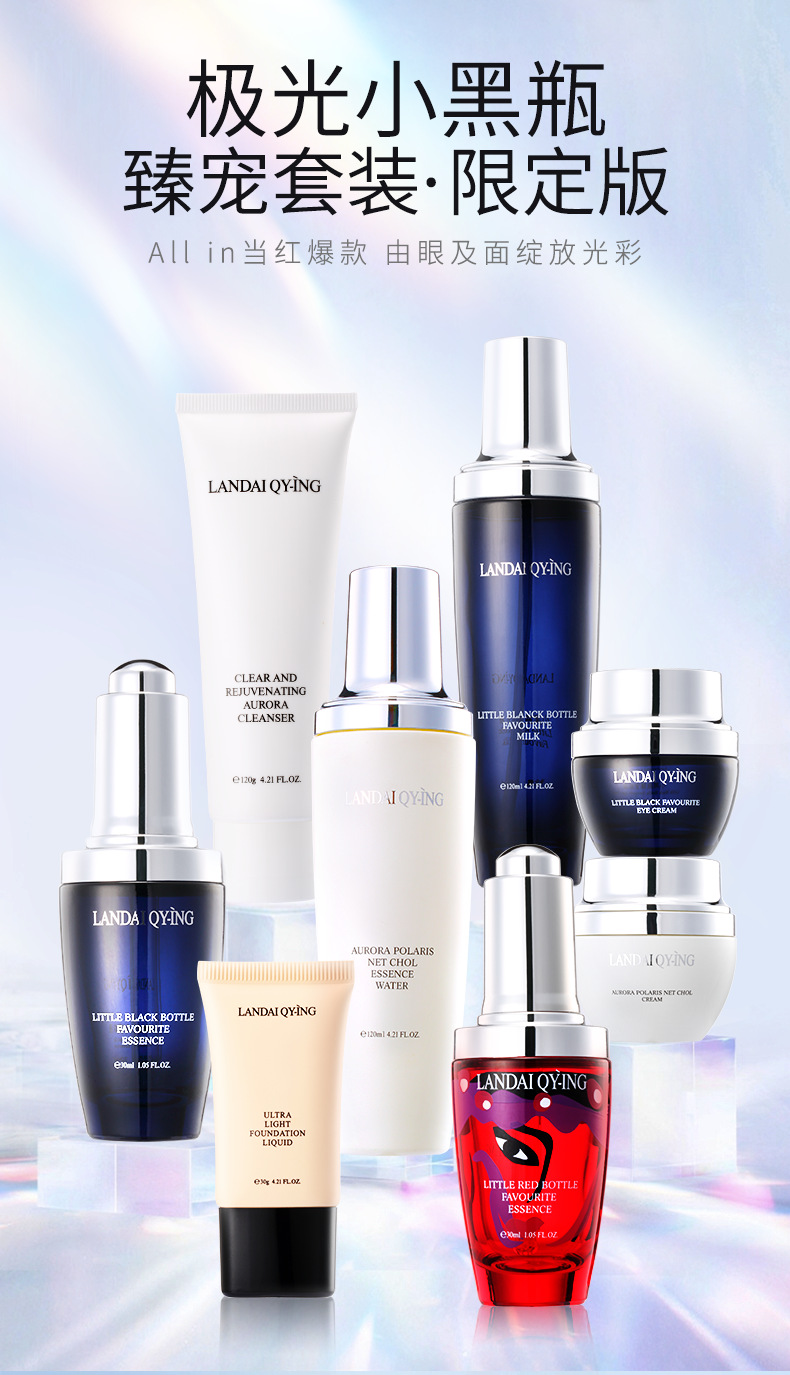 兰黛清滢(LANDAI QY-ING) 法国兰黛极光小黑瓶八件套护肤套装保湿紧致控油化妆品礼盒