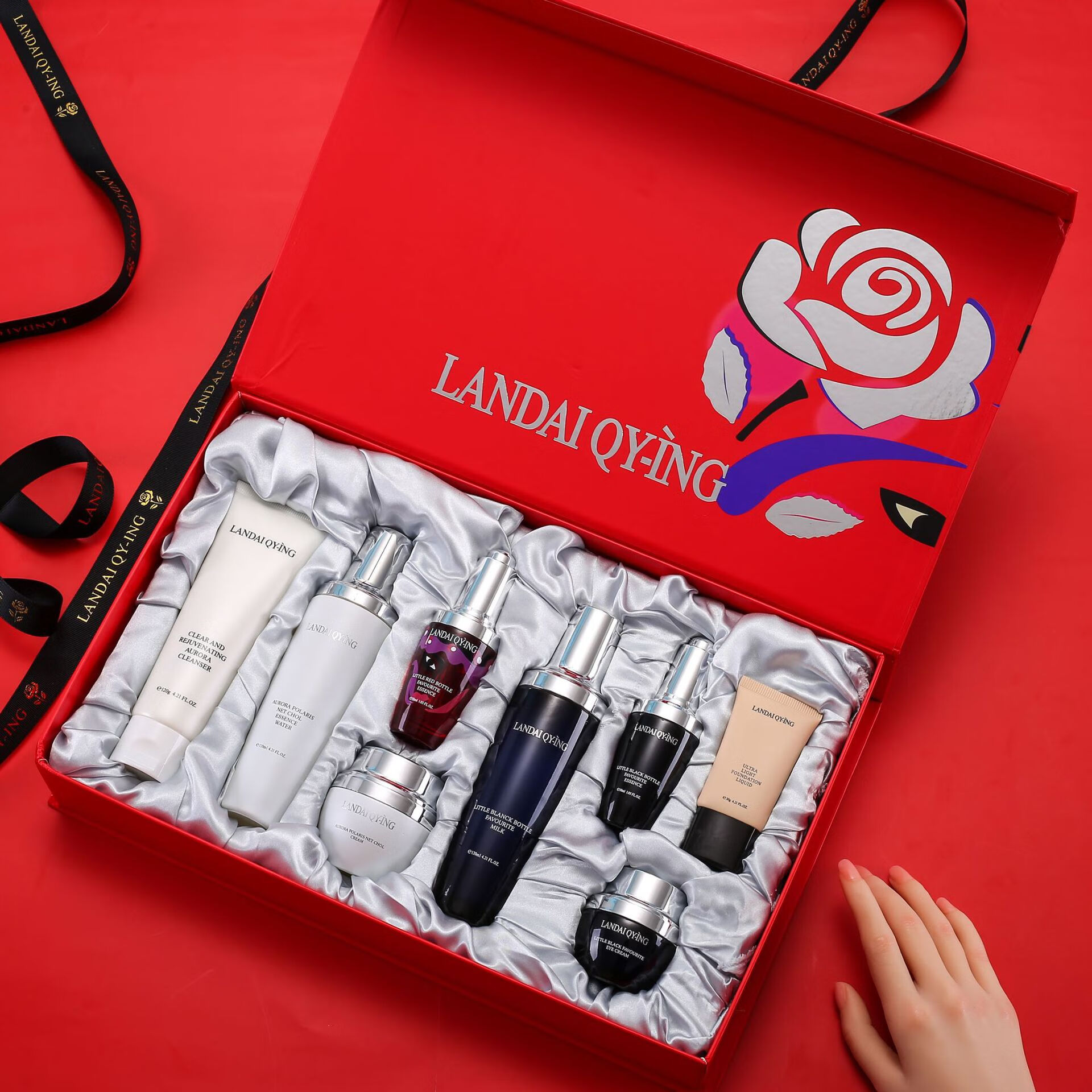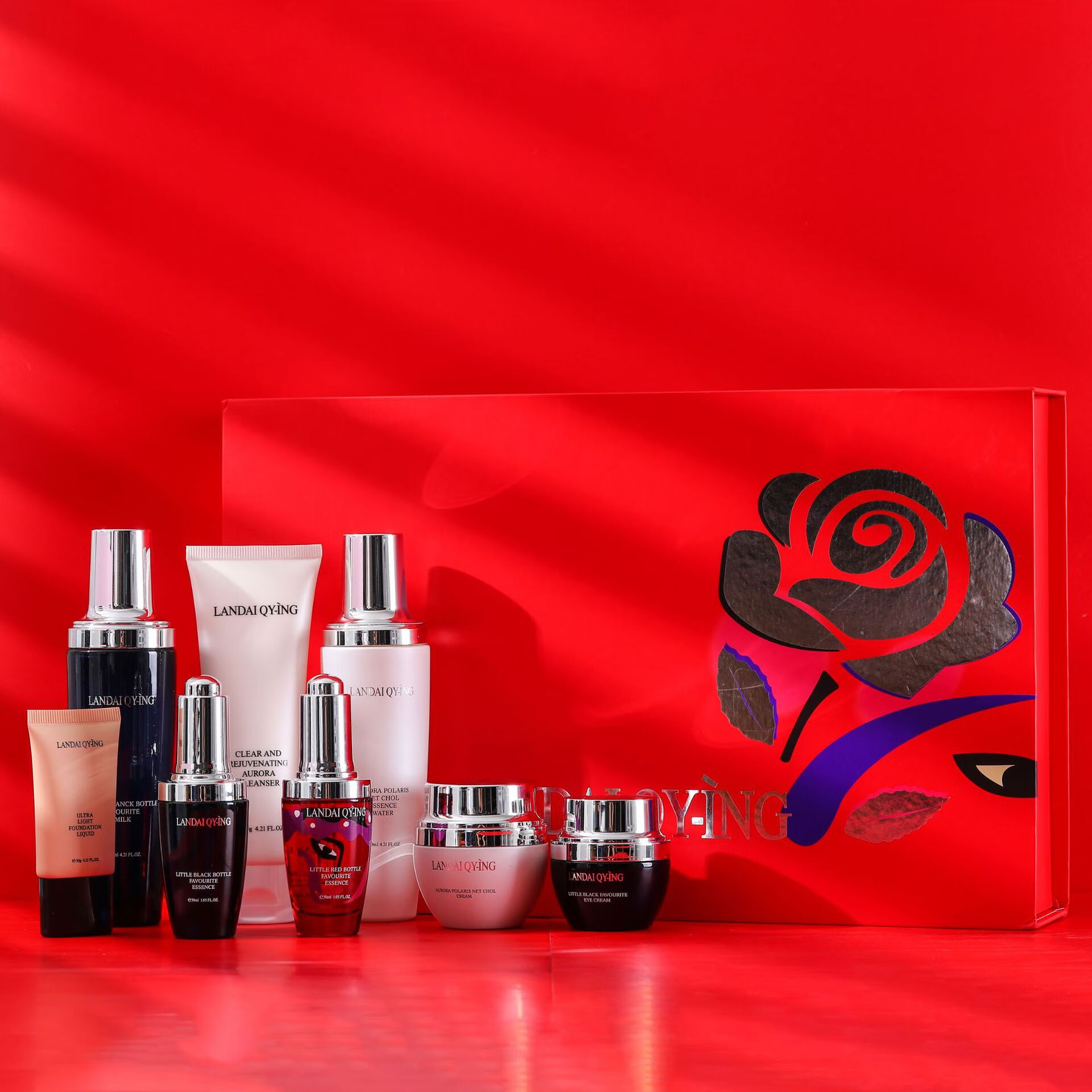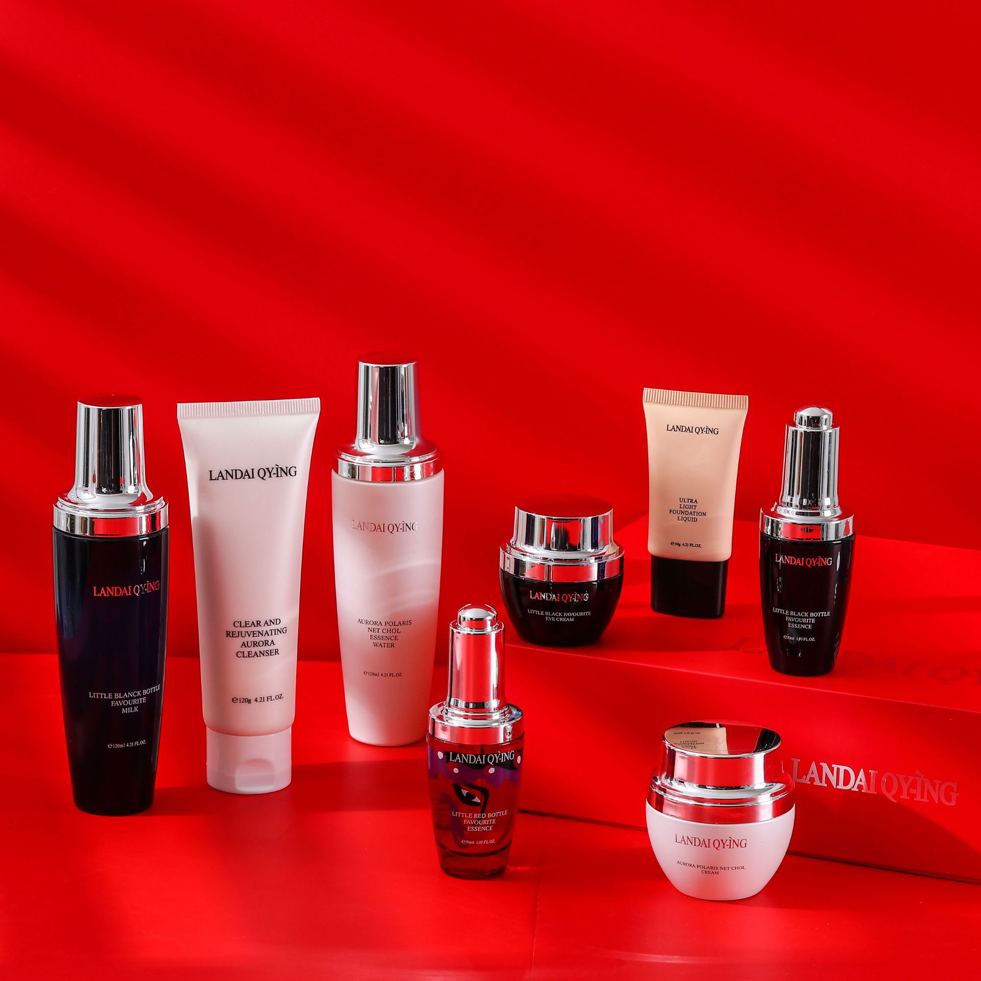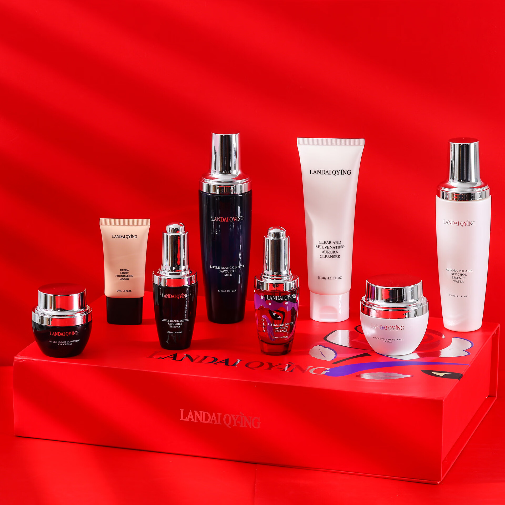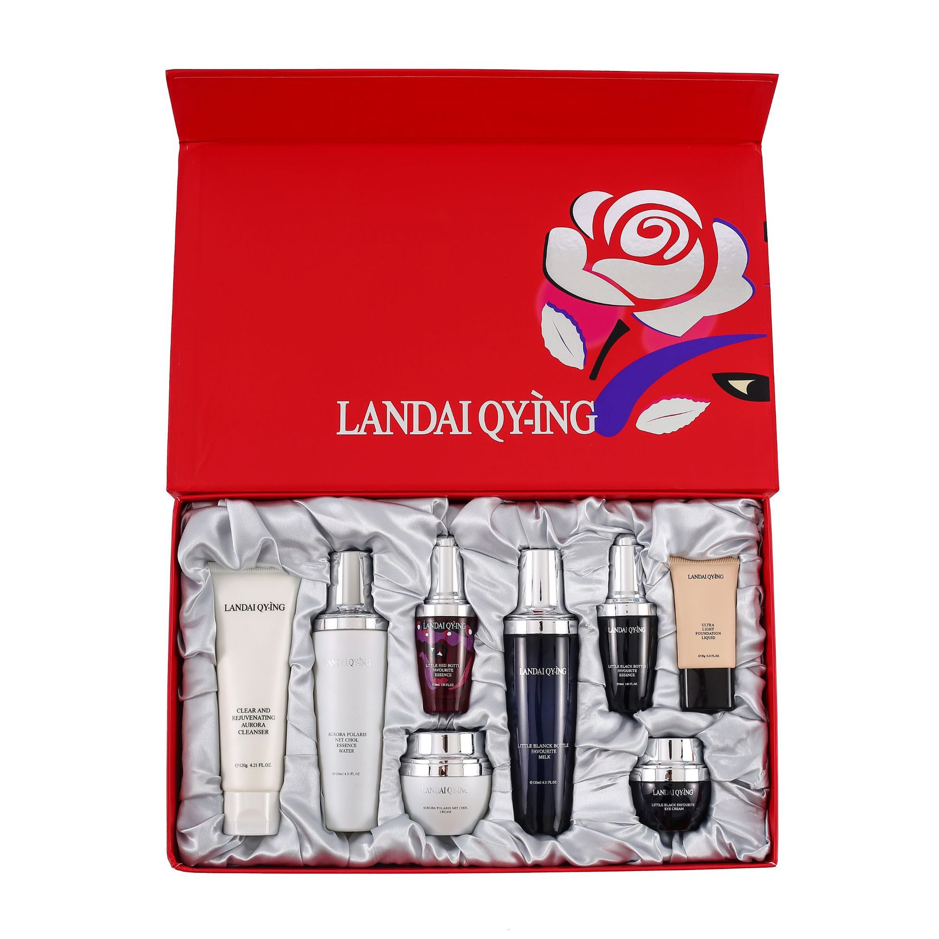 兰黛清滢(LANDAI QY-ING) 法国兰黛极光小黑瓶八件套护肤套装保湿紧致控油化妆品礼盒