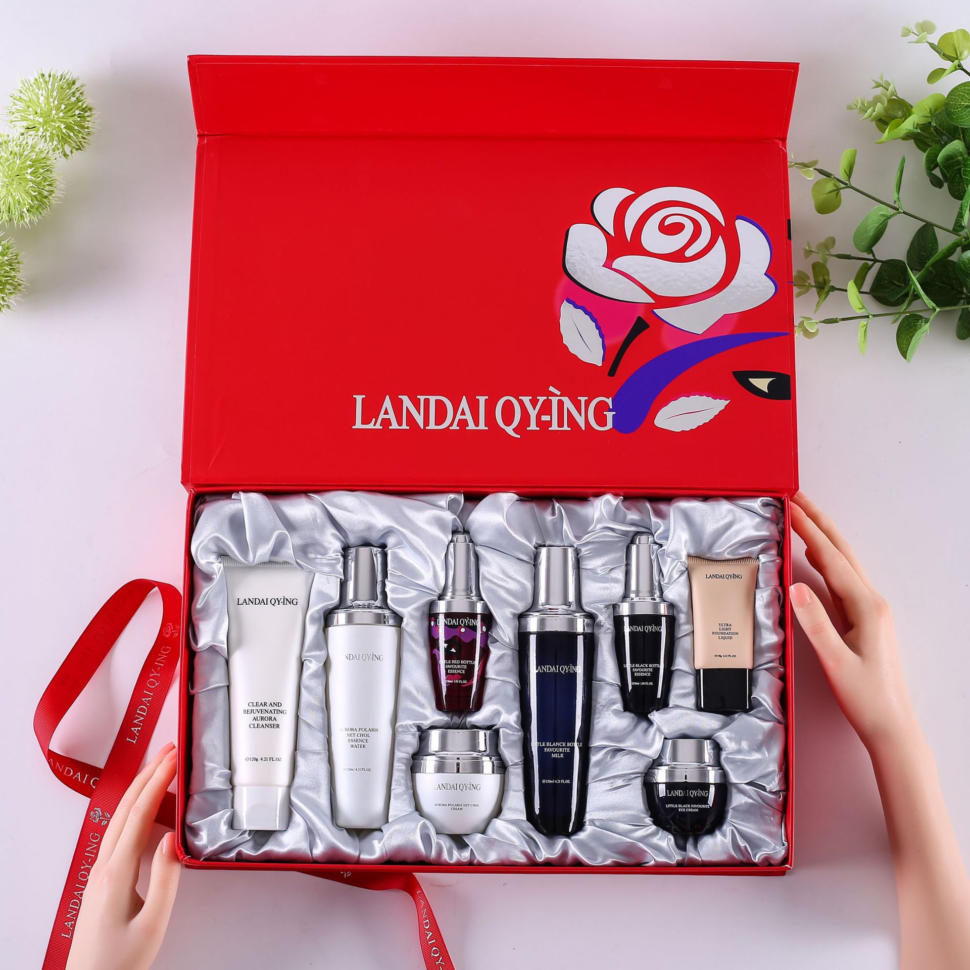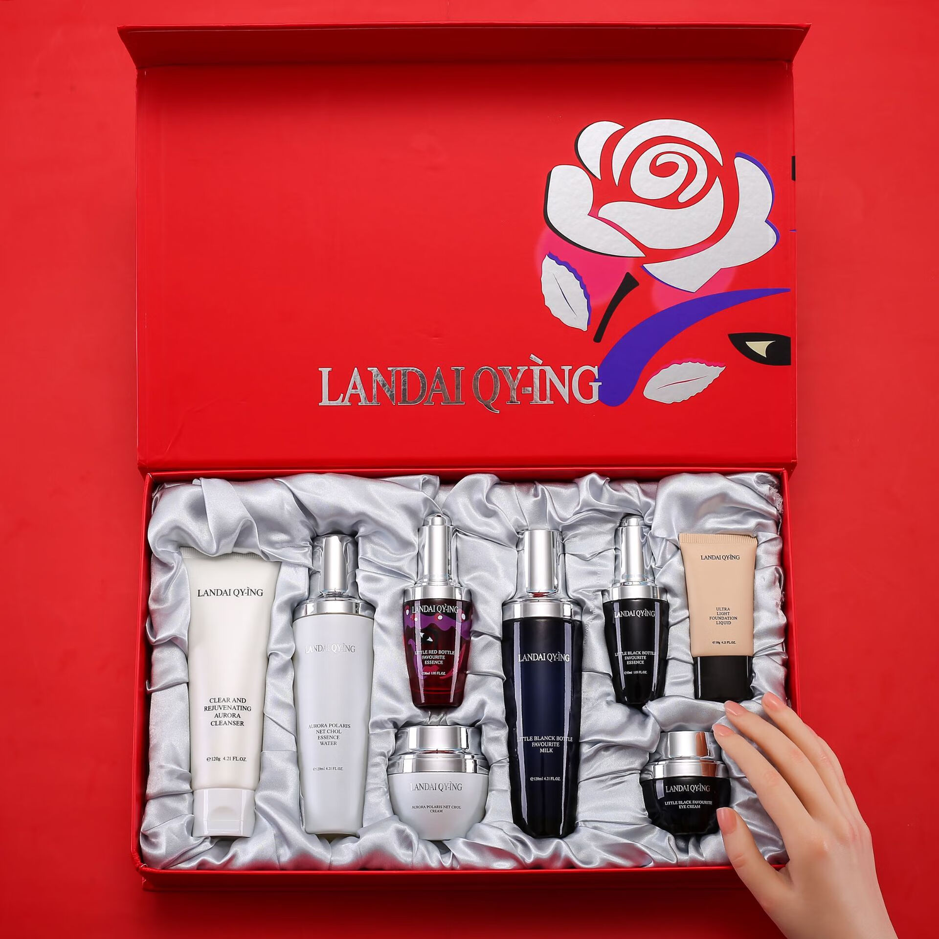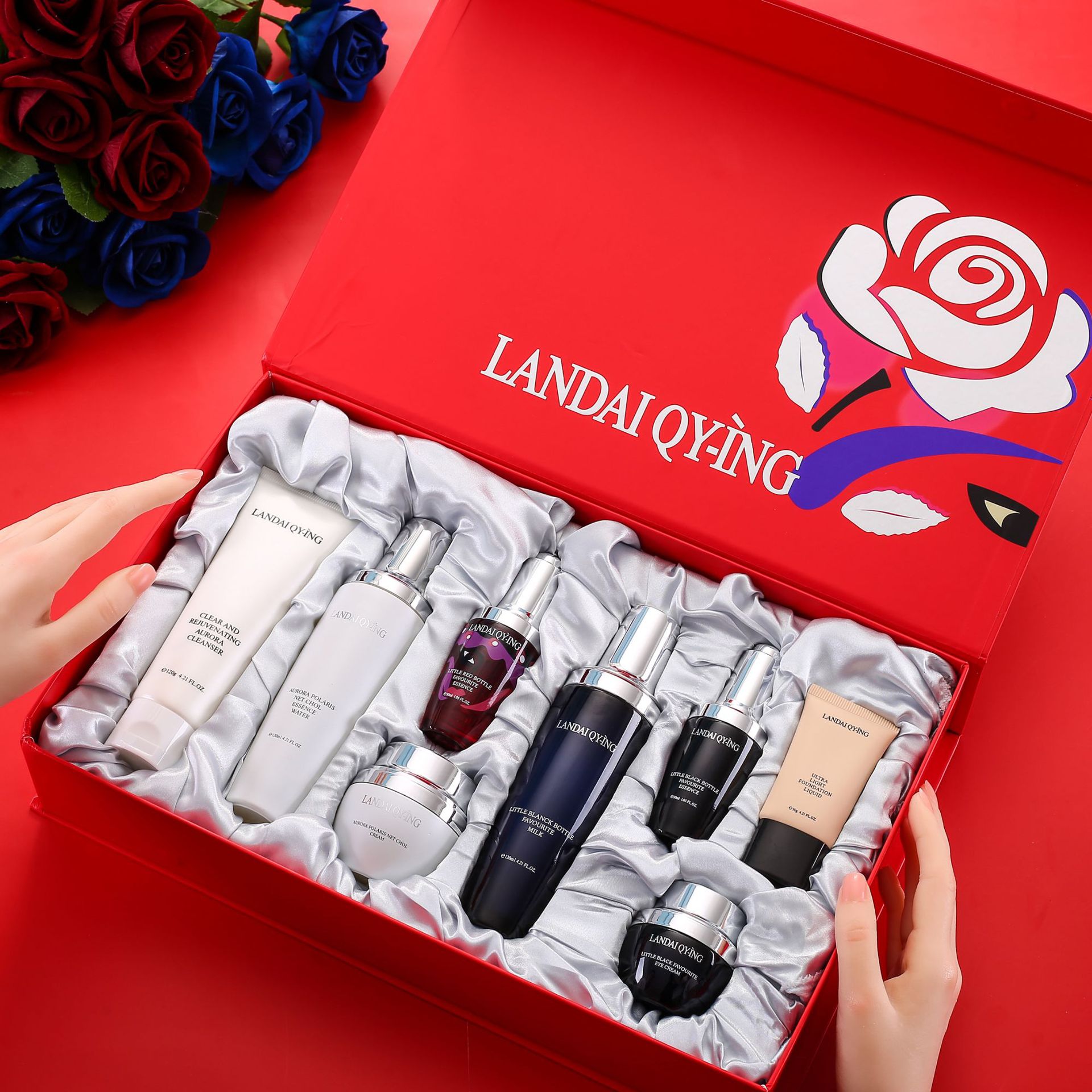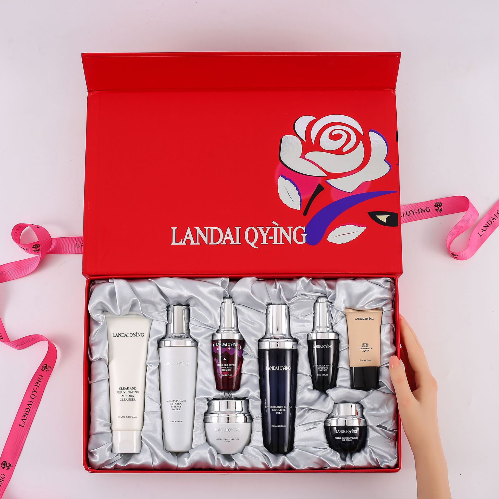 兰黛清滢(LANDAI QY-ING) 法国兰黛极光小黑瓶八件套护肤套装保湿紧致控油化妆品礼盒
