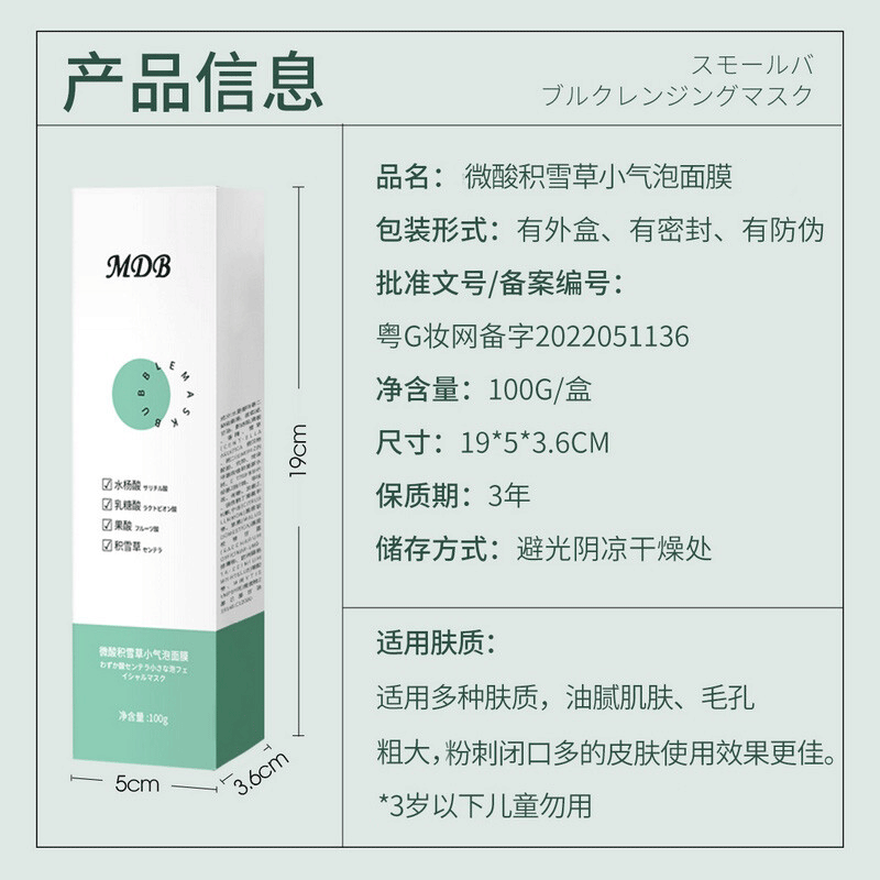 MDB 【现货速发】 积雪草小气泡面膜mdb自发泡收缩毛孔控油去嘿头面膜女