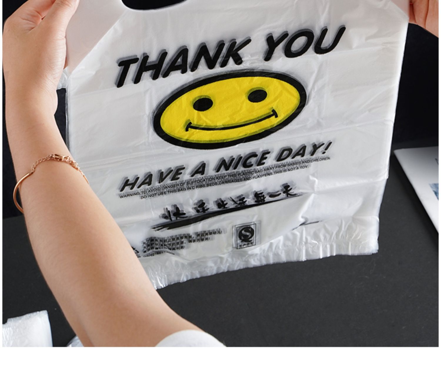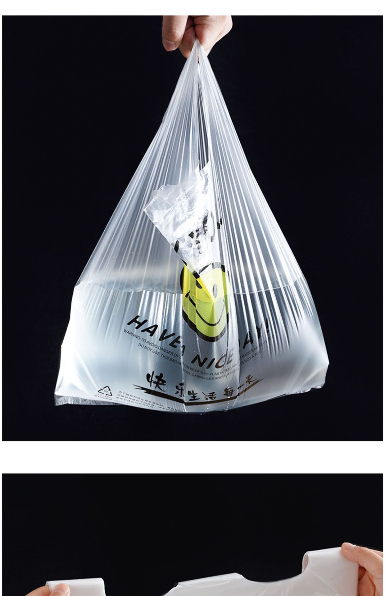 首页> 日用百货> 一次性笑脸塑料袋包装袋食品打包方便袋外卖打包水果背心袋可批发