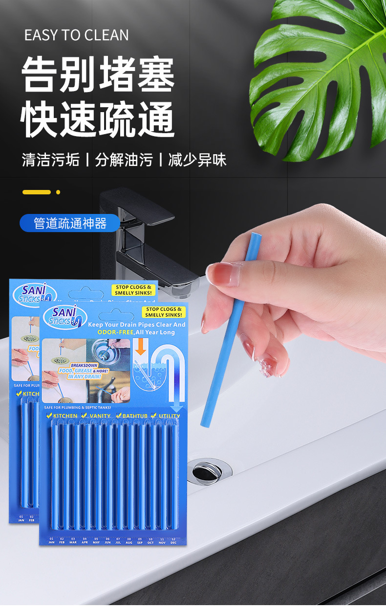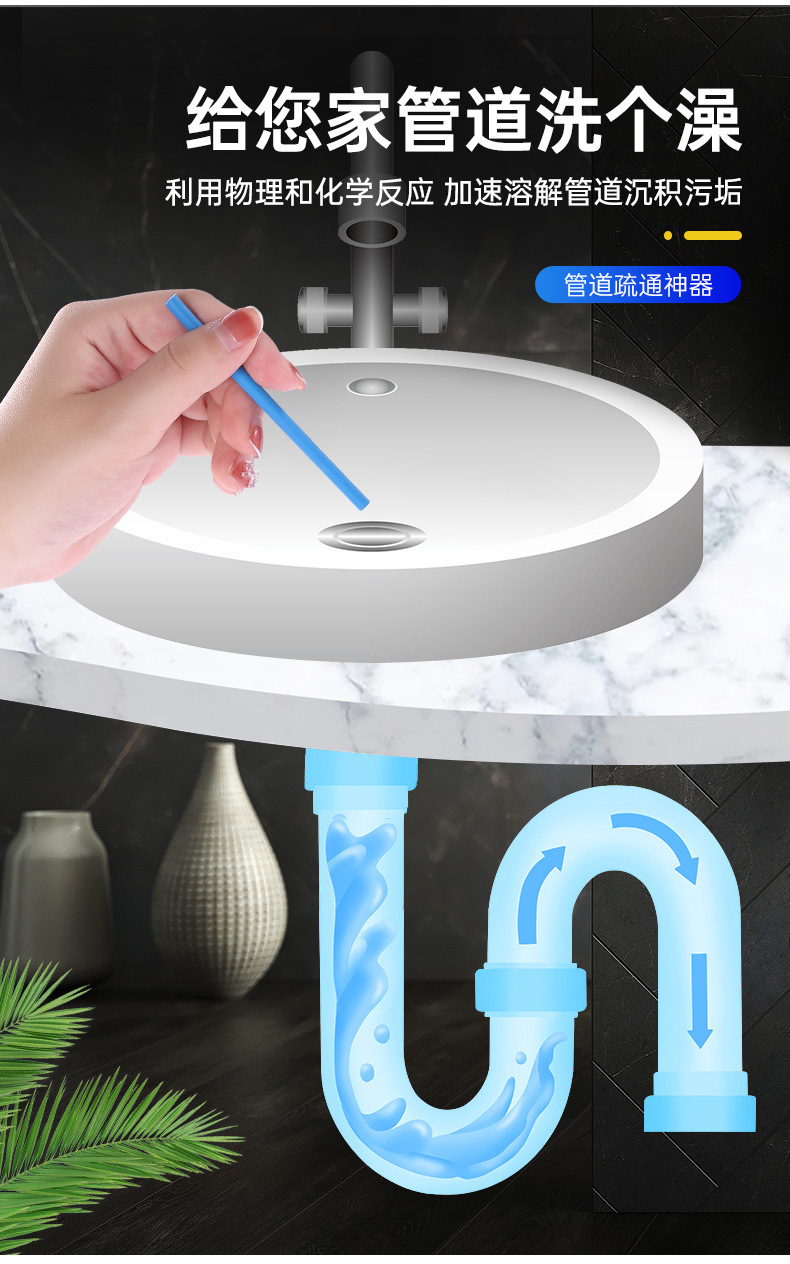 管道清洁棒家用马桶厕所厨房地漏去污棒下水道有效去除污渍清洁棒