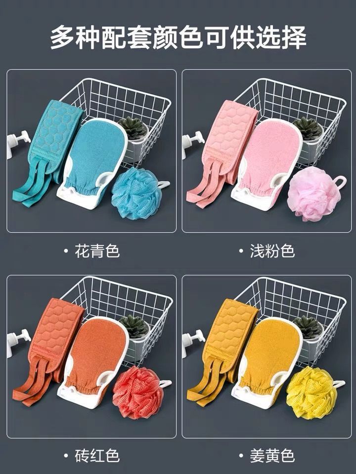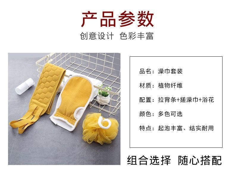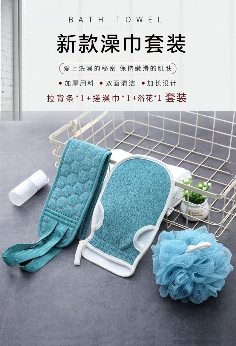 搓澡巾三件套洗澡神器搓泥搓背快速起泡拉背条搓澡巾浴花三件套