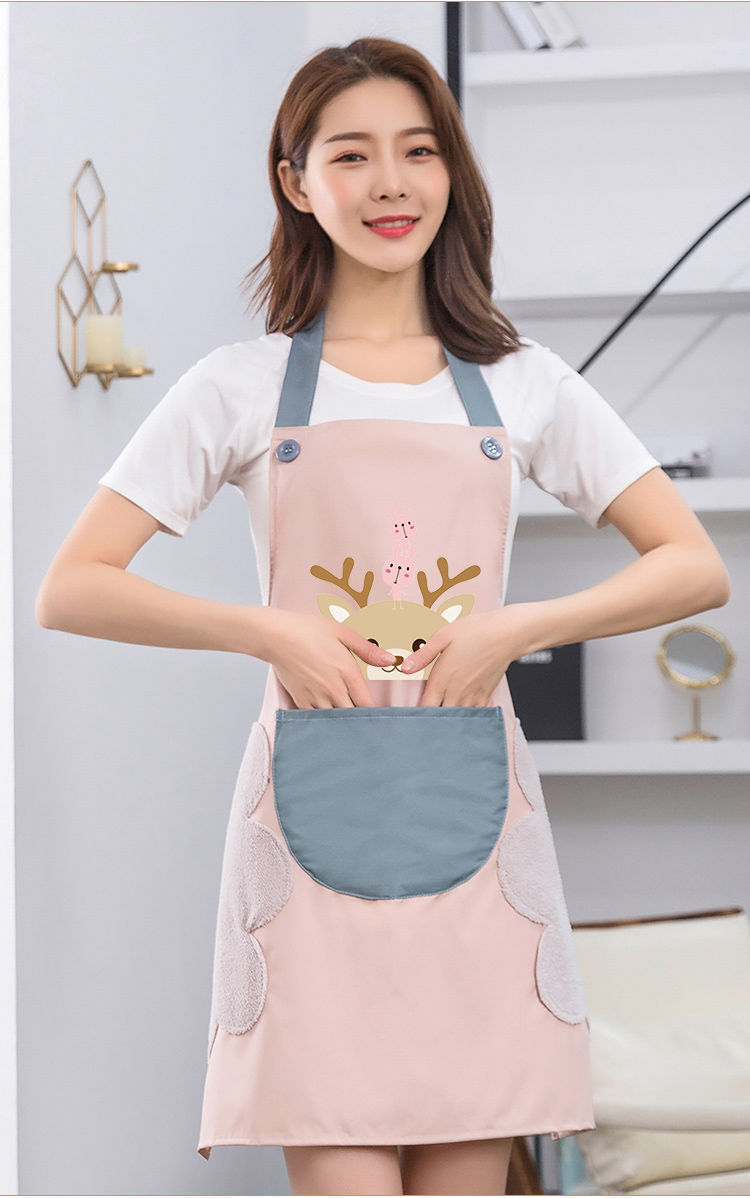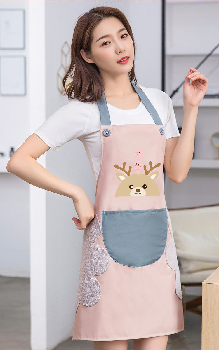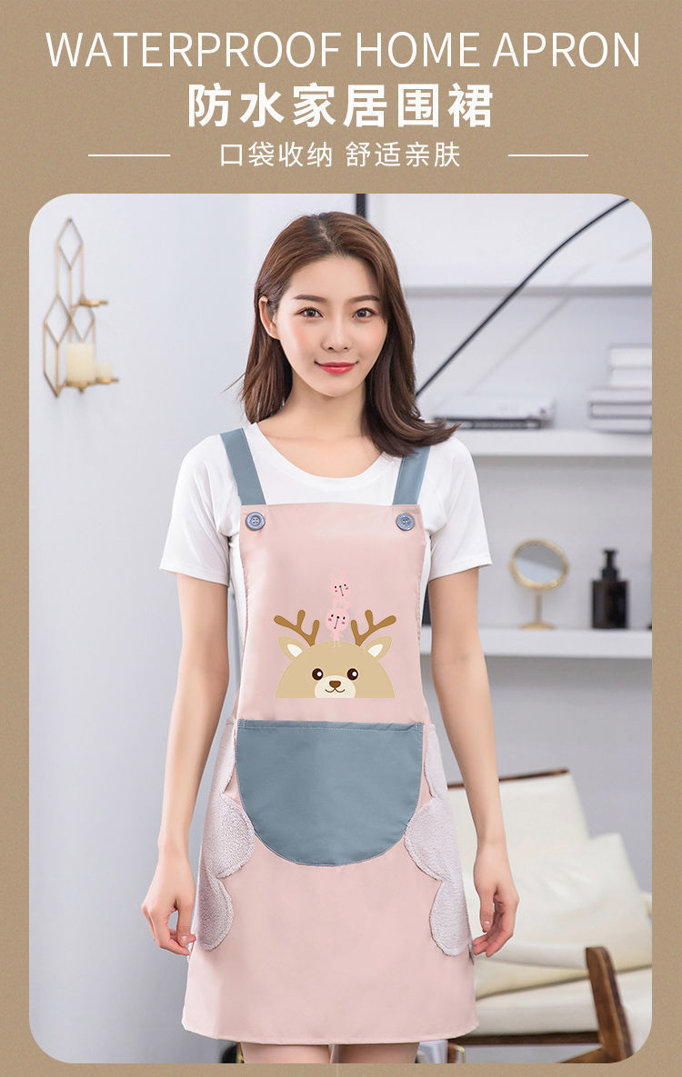 可爱小鹿厨房围裙家用创意简约做饭防水防油男女时尚围裙罩衣批发