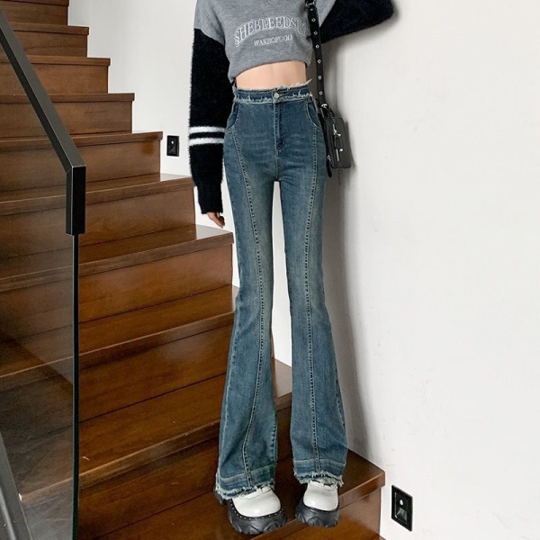 毛边微喇叭牛仔裤女2023春季新款设计感小众高腰显瘦马蹄裤ins潮