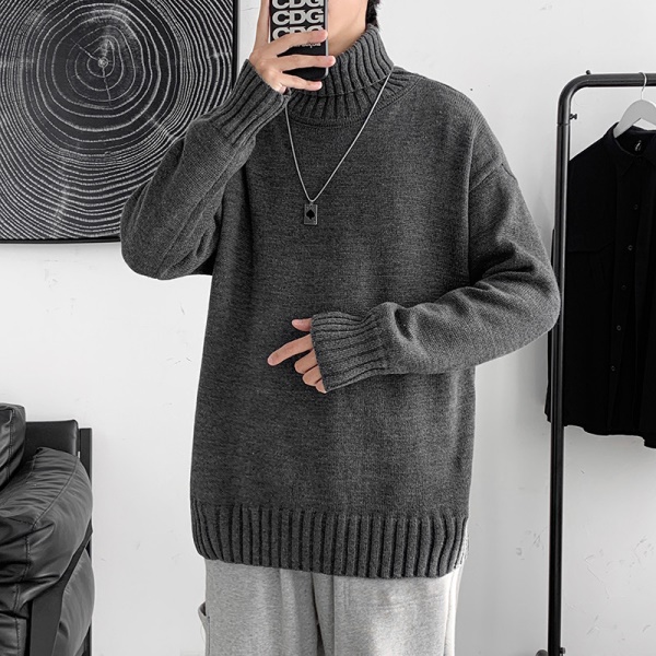 高领毛衣男秋冬季慵懒风宽松纯色针织衫ins潮牌高街日系大码外套
