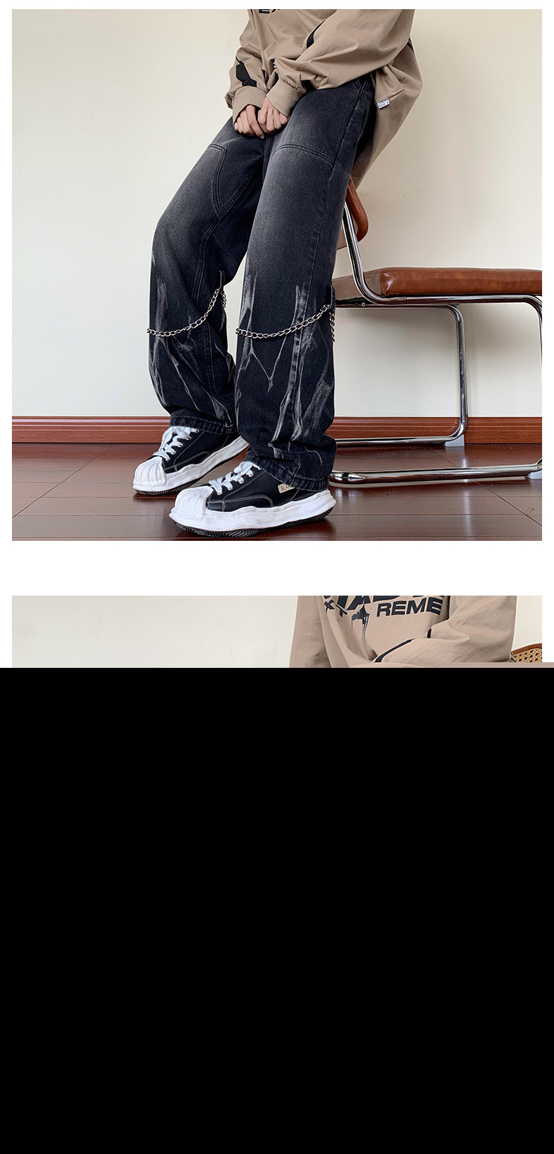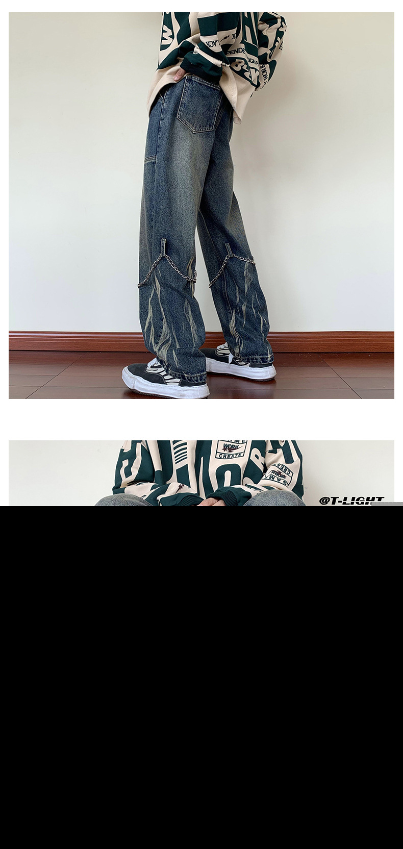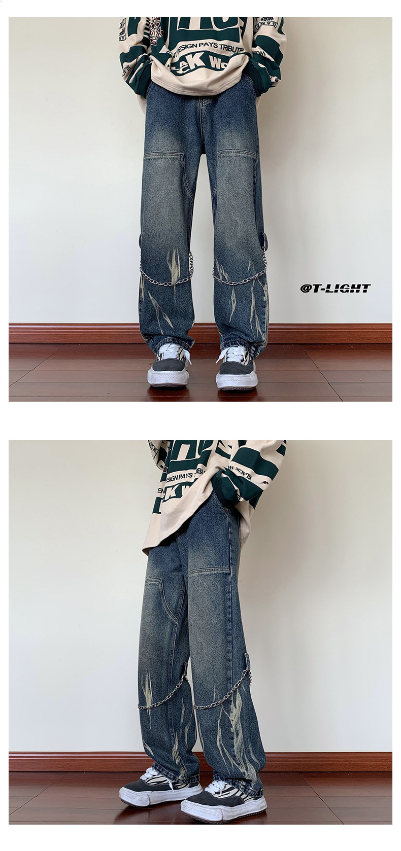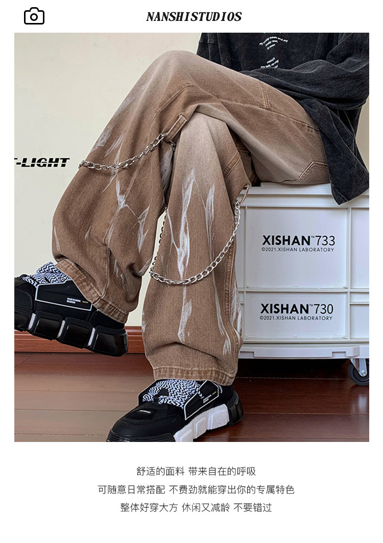 首页> 服装> 欧美hiphop牛仔裤设计感高级感渐变扎染裤子美式高街男挂链阔腿裤