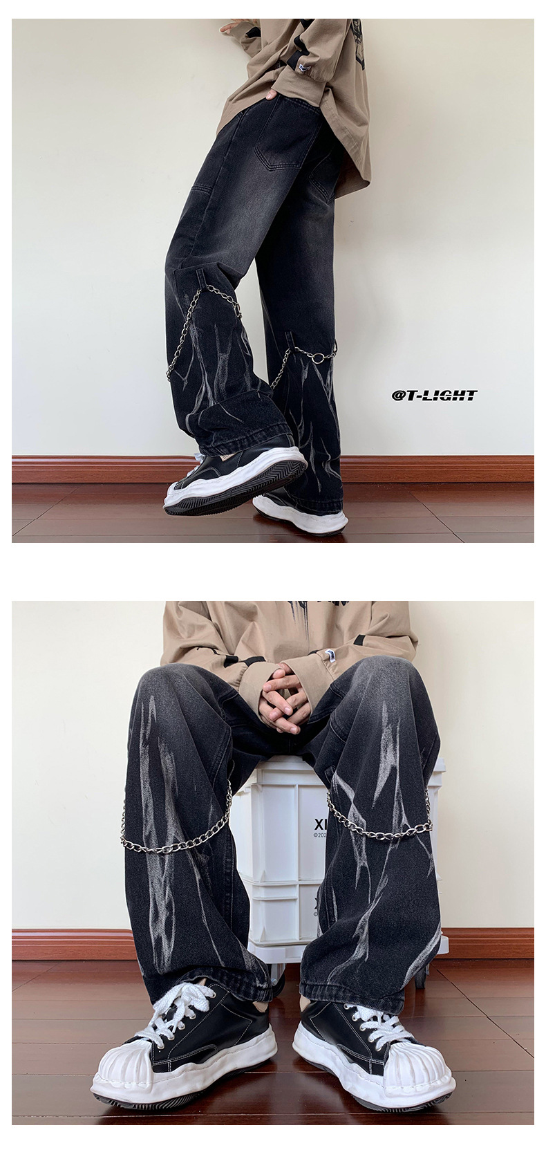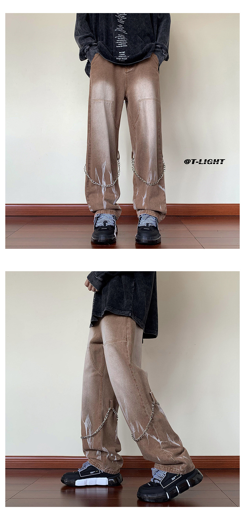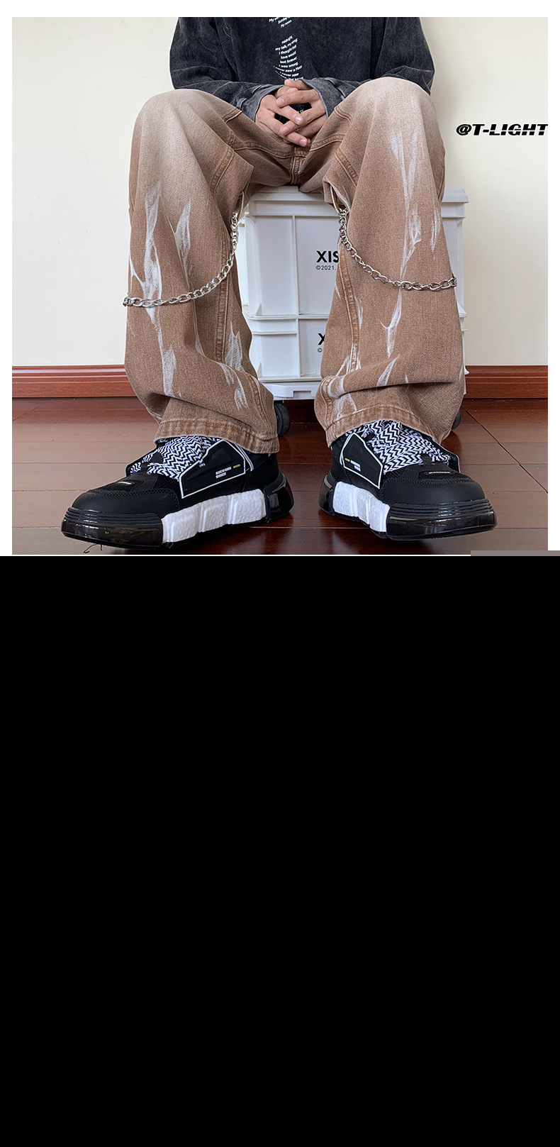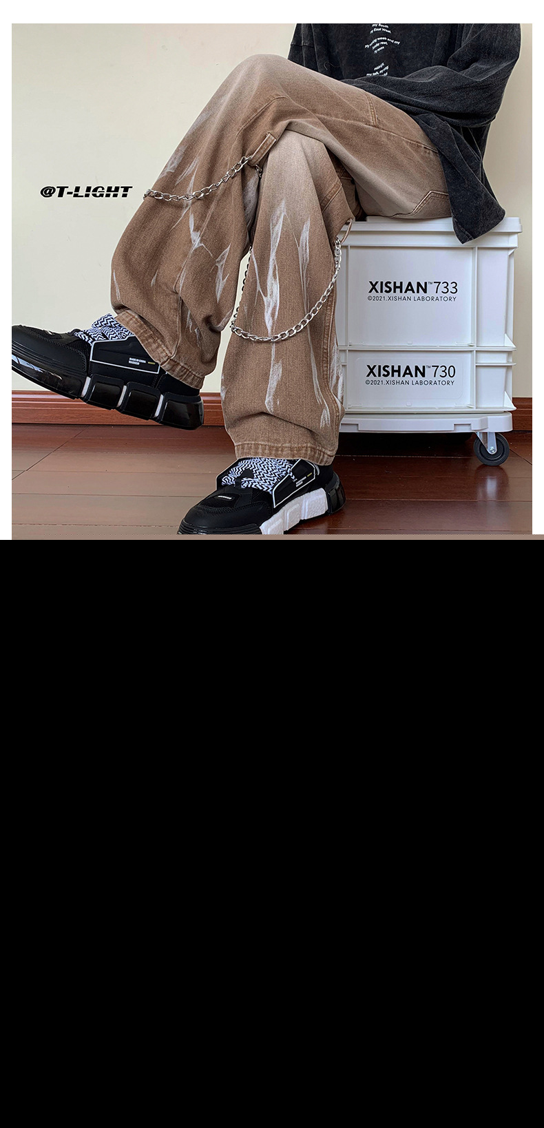 首页> 服装> 欧美hiphop牛仔裤设计感高级感渐变扎染裤子美式高街男挂链阔腿裤