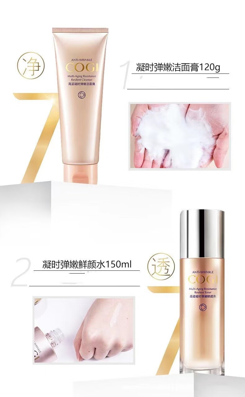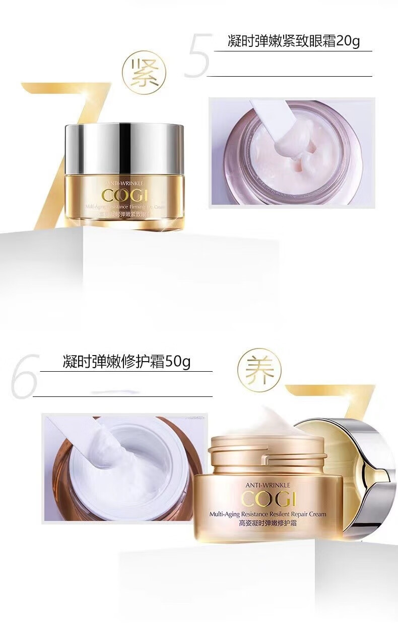 高姿(COGI) 凝时弹嫩修护紧致组合套装礼盒装洁面乳爽肤水乳液面霜眼霜精华液补水保湿