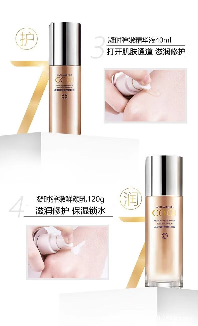 首页> 化妆品> 高姿(COGI) 凝时弹嫩修护紧致组合套装礼盒装洁面乳爽肤水乳液面霜眼霜精华液补水保湿