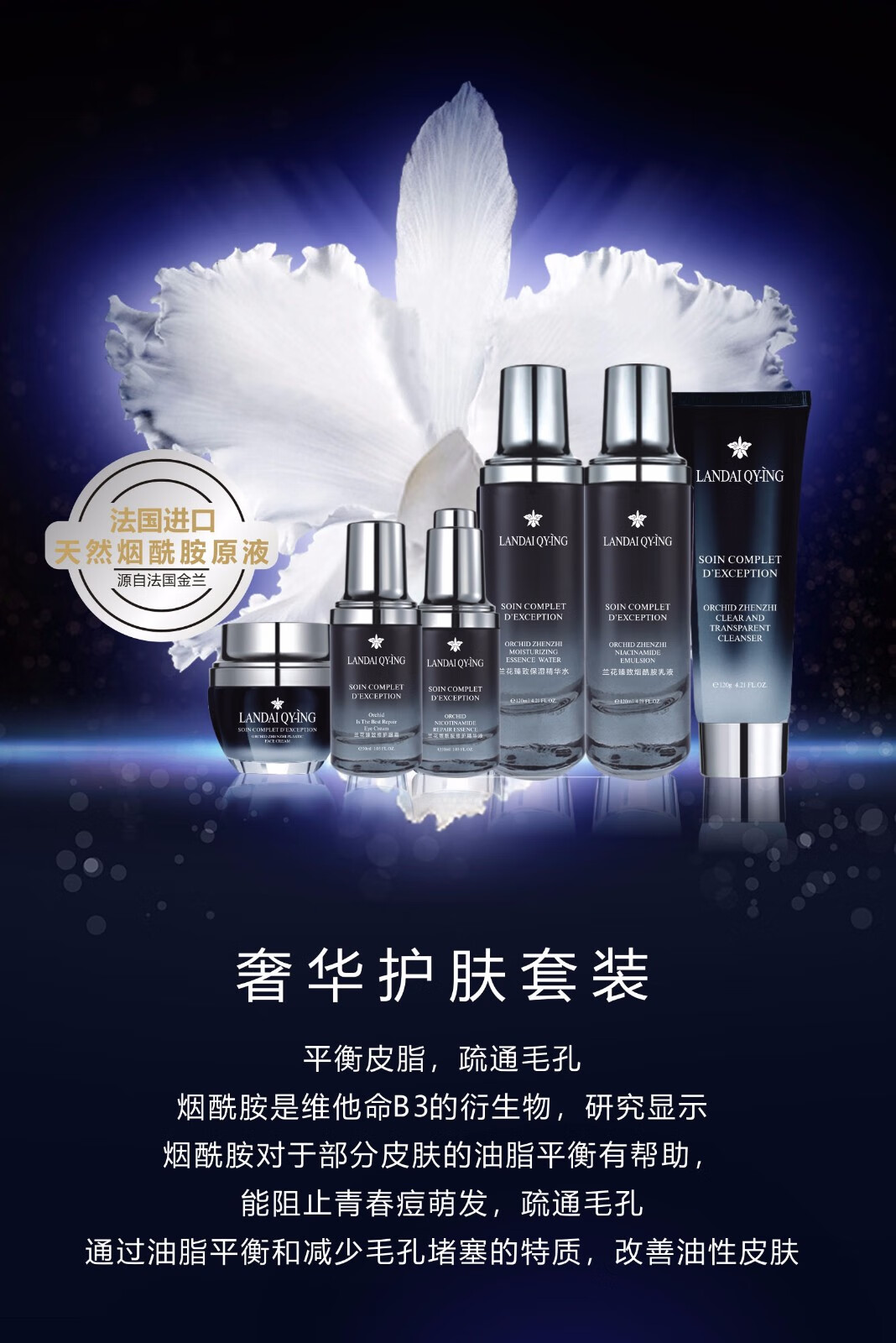 兰黛清滢(LANDAI QY-ING) 兰黛清滢 法国小黑瓶烟酰胺化妆品小黑瓶水乳烟酰胺护肤品补水保