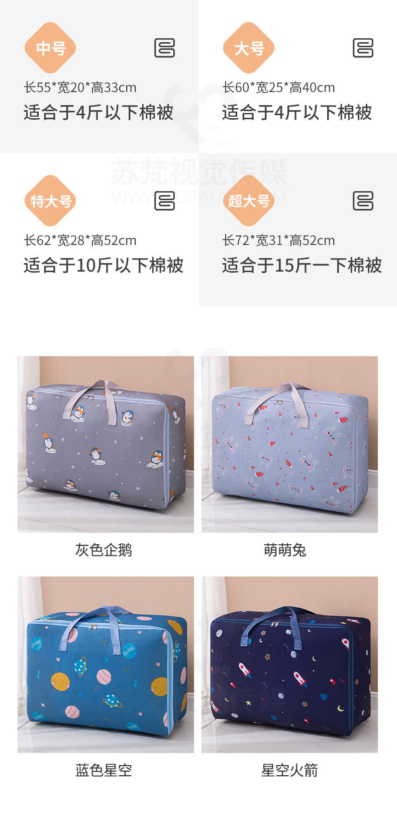 首页> 日用百货> 搬家袋防水棉被收纳袋大容量衣服打包袋可折叠整理加厚款大收纳包