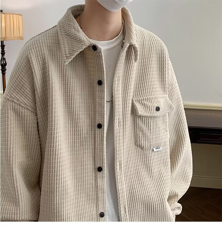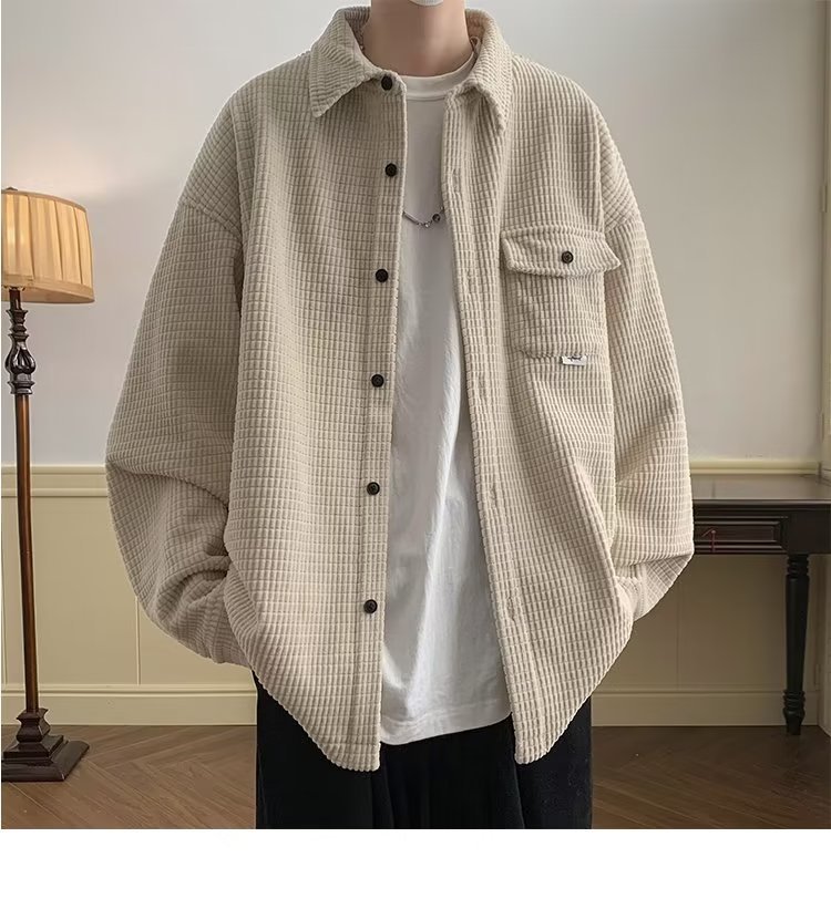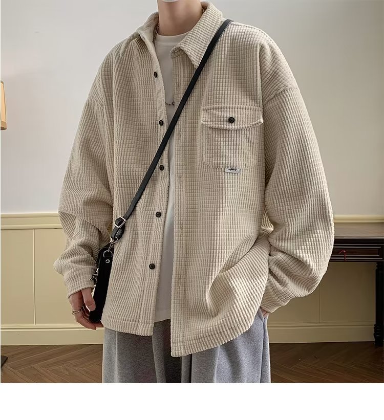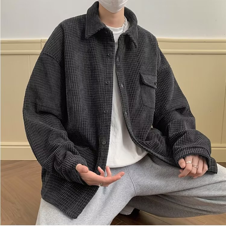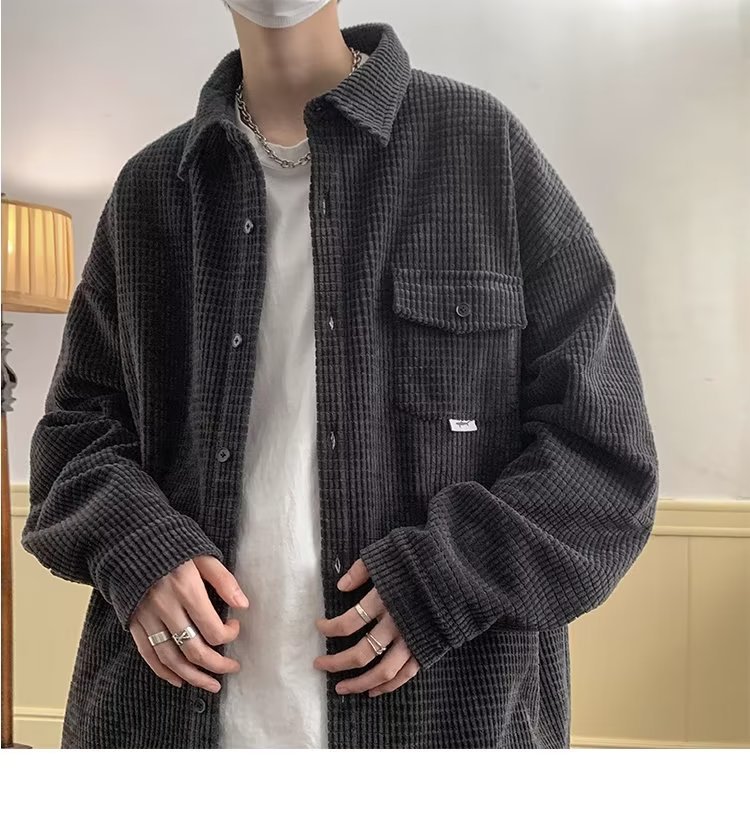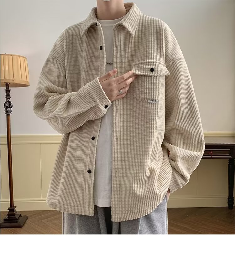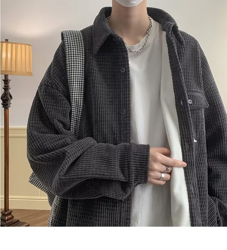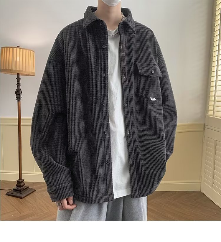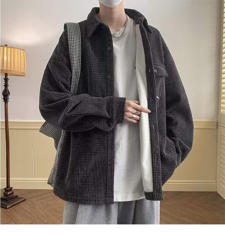 灯芯绒黑色衬衫男士加绒加厚保暖外套冬季高级感痞帅休闲复古衬衣