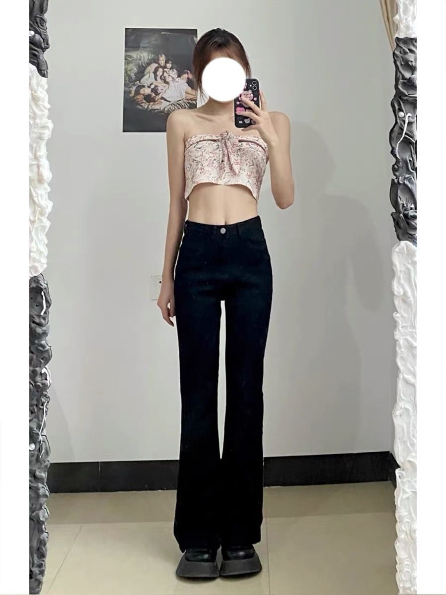 黑色高腰微喇牛仔裤女2023年春秋季新款宽松显瘦弹力直筒阔腿裤子