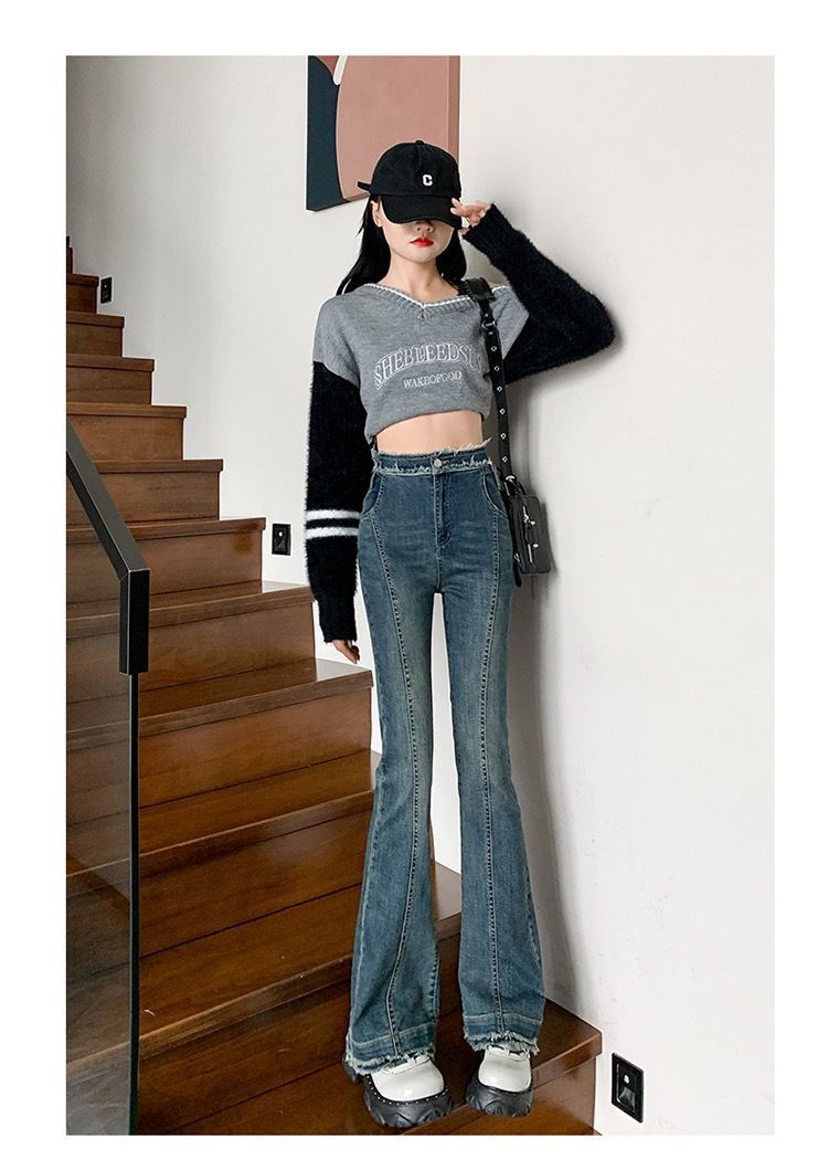 毛边微喇叭牛仔裤女2023春季新款设计感小众高腰显瘦马蹄裤ins潮