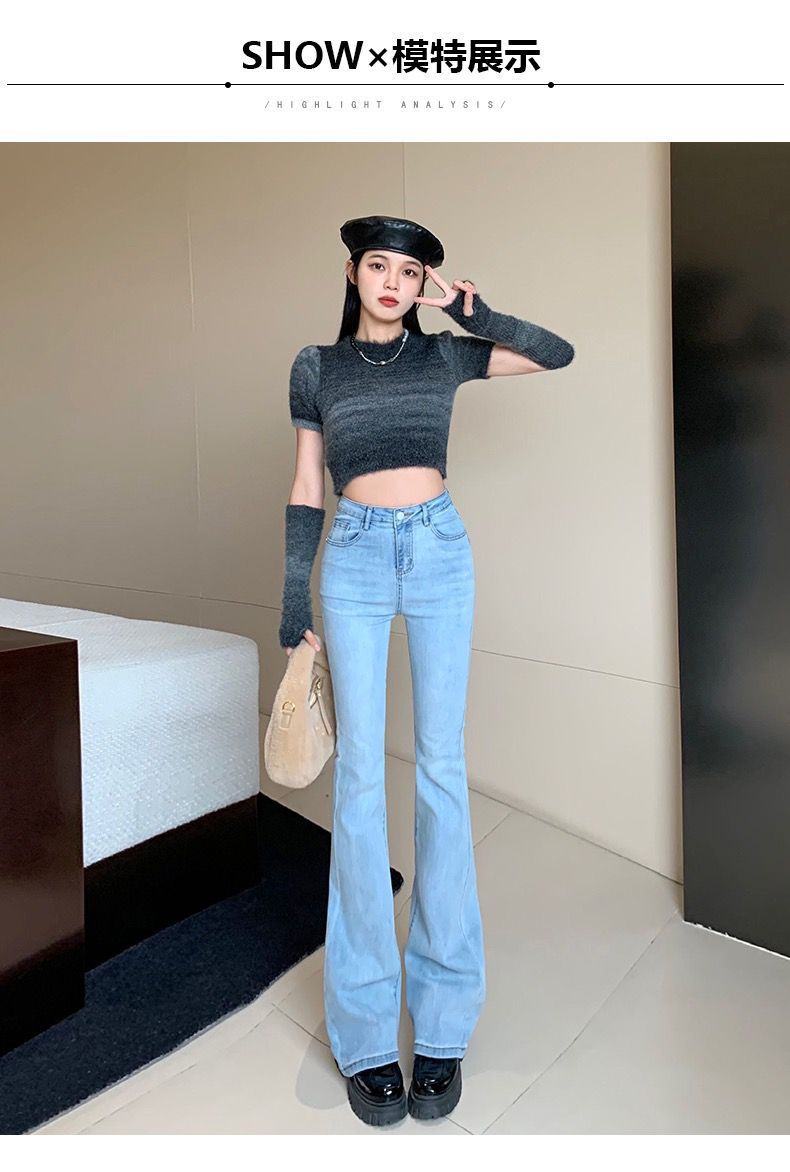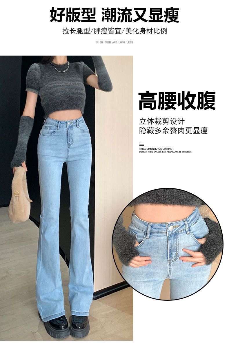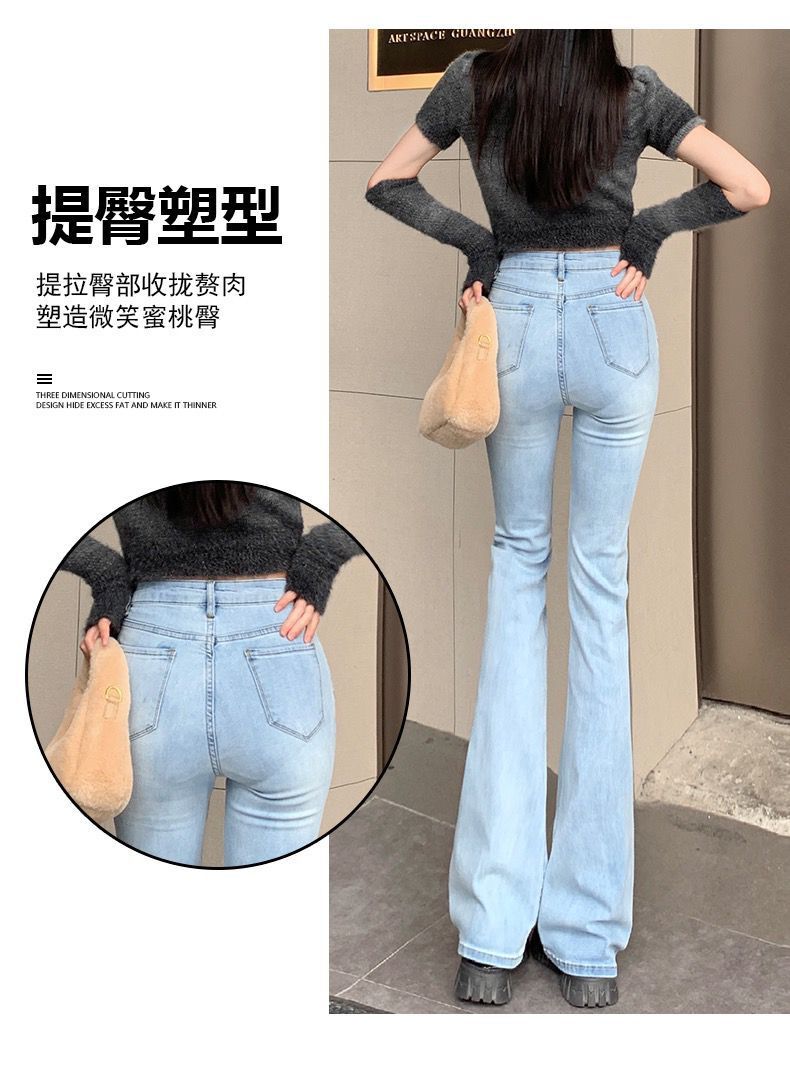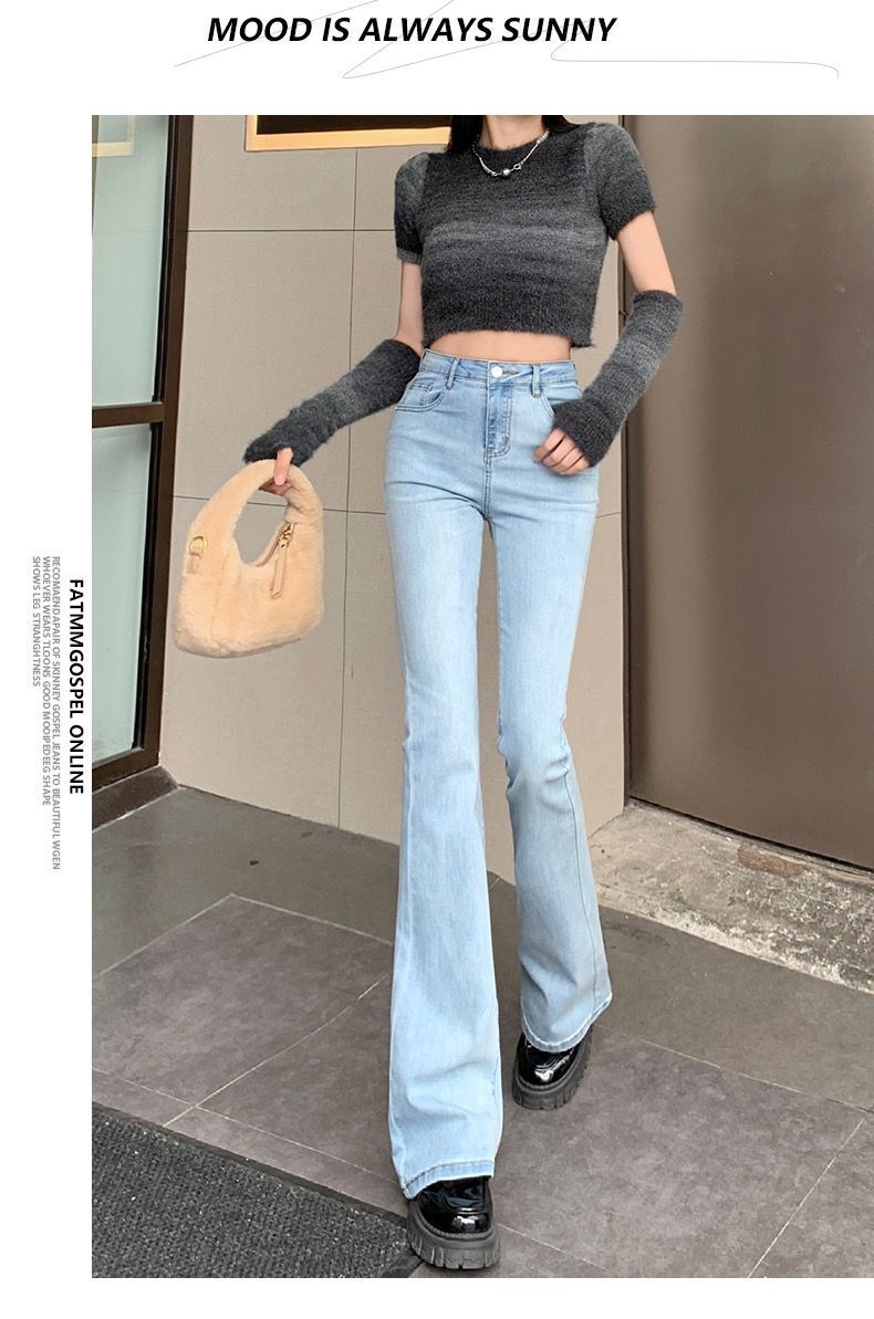浅蓝色牛仔裤女2023年春秋季新款喇叭裤高腰显瘦修身弹力微喇裤子