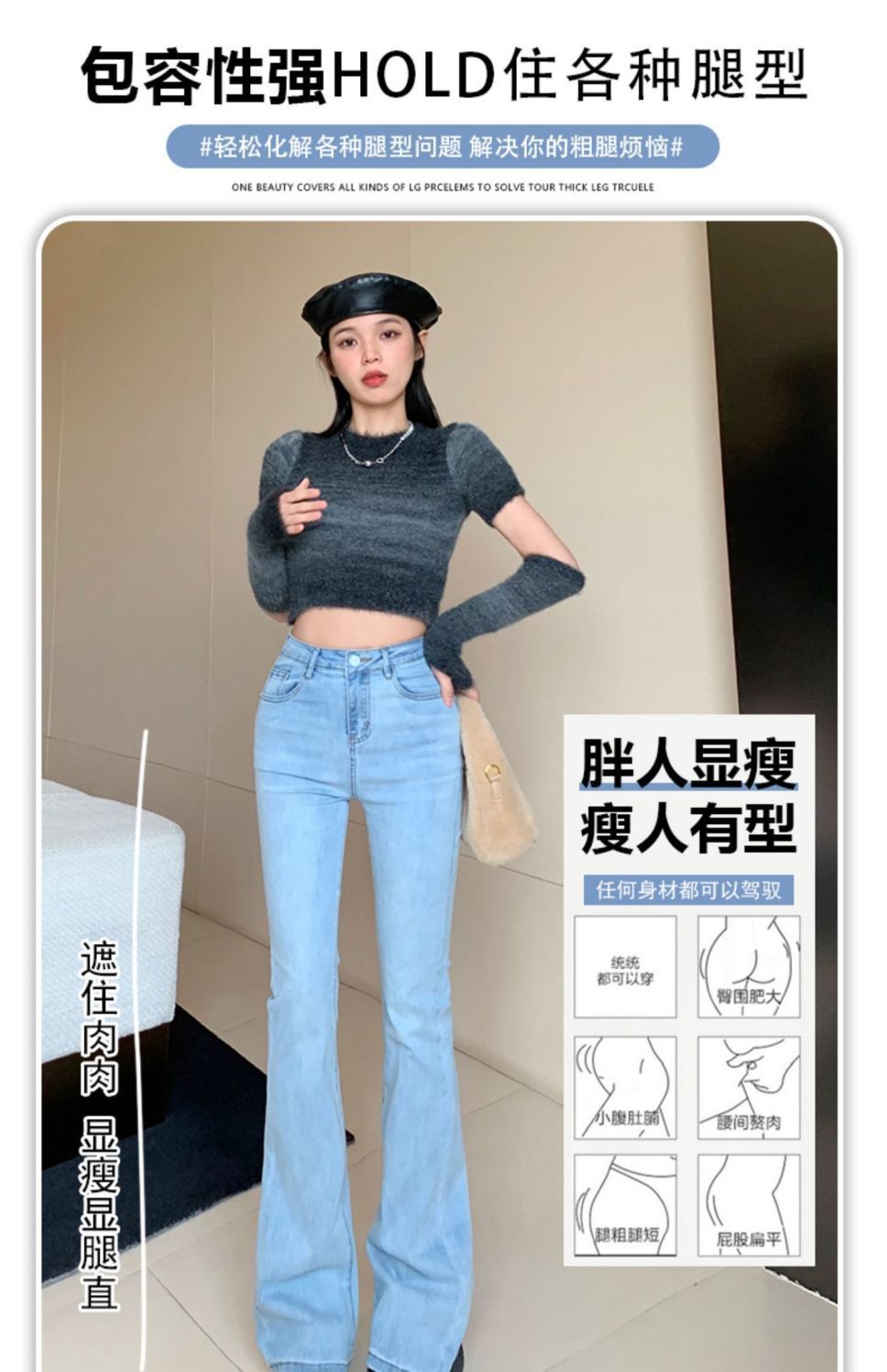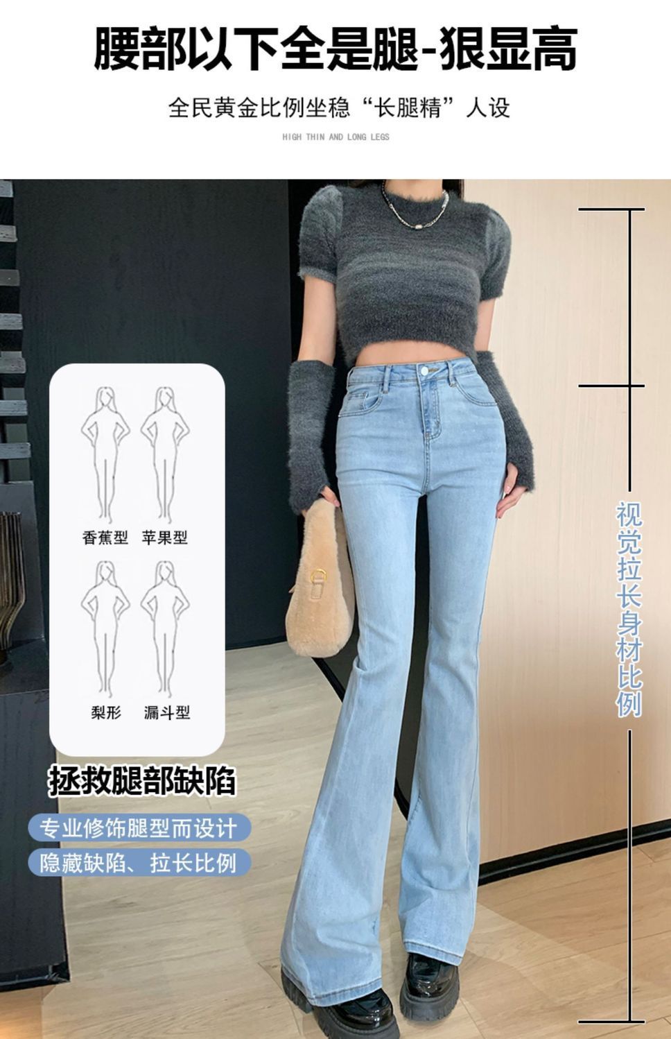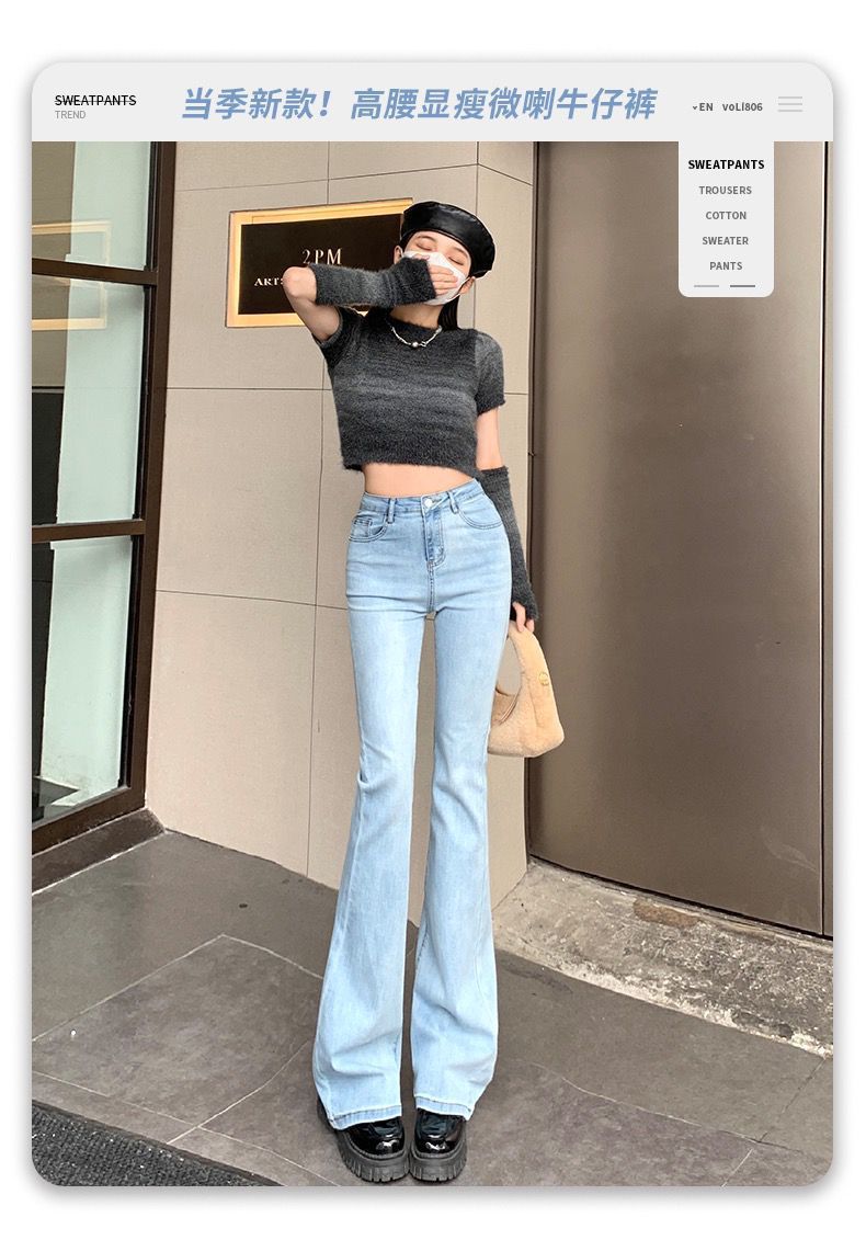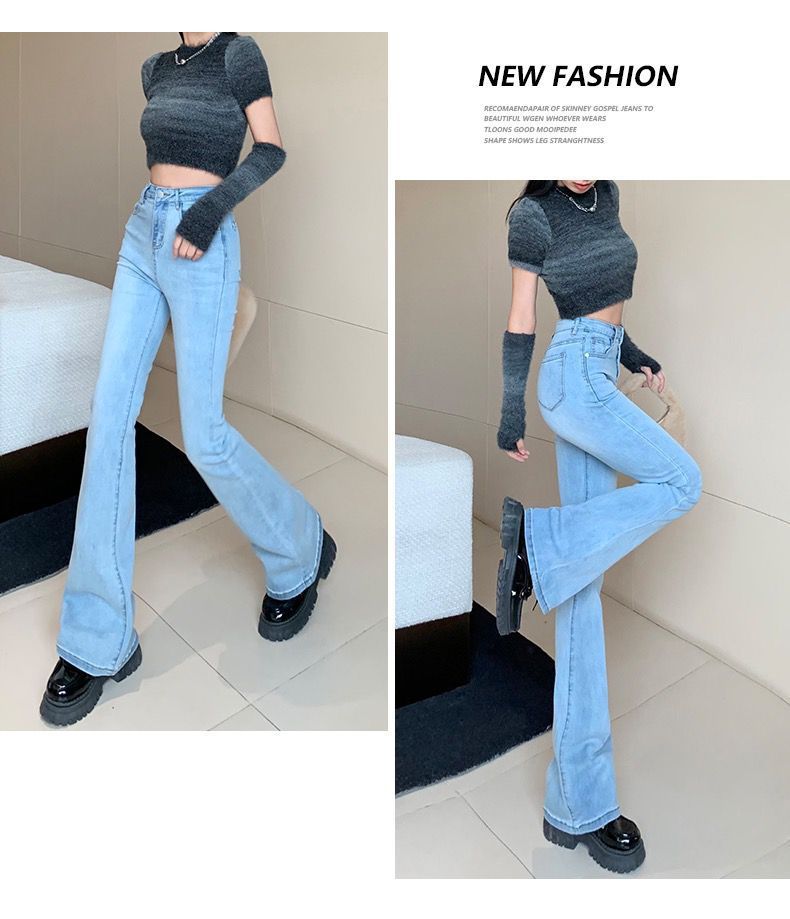 浅蓝色牛仔裤女2023年春秋季新款喇叭裤高腰显瘦修身弹力微喇裤子