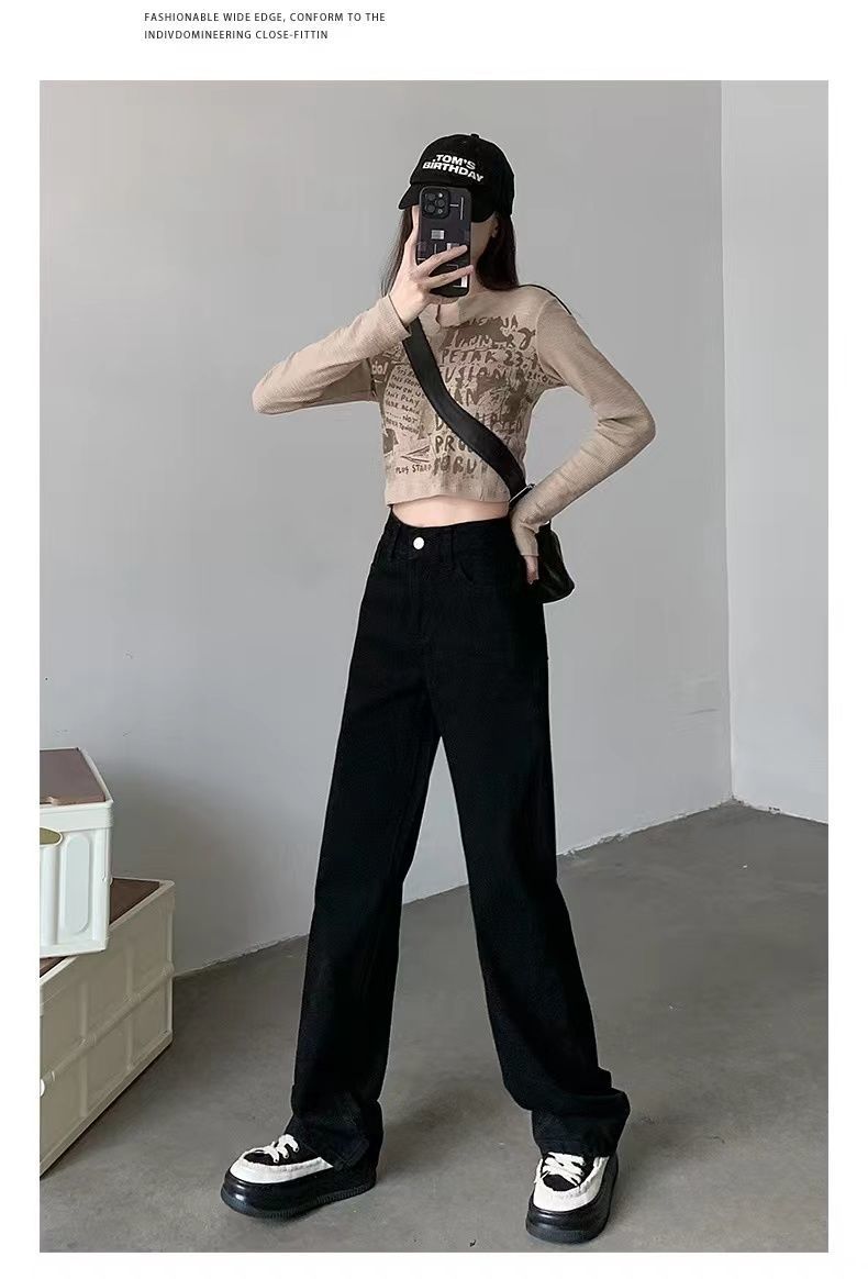 直筒牛仔裤女高腰显瘦春秋季2023年新款小个子宽松阔腿拖地长裤子