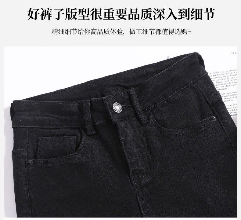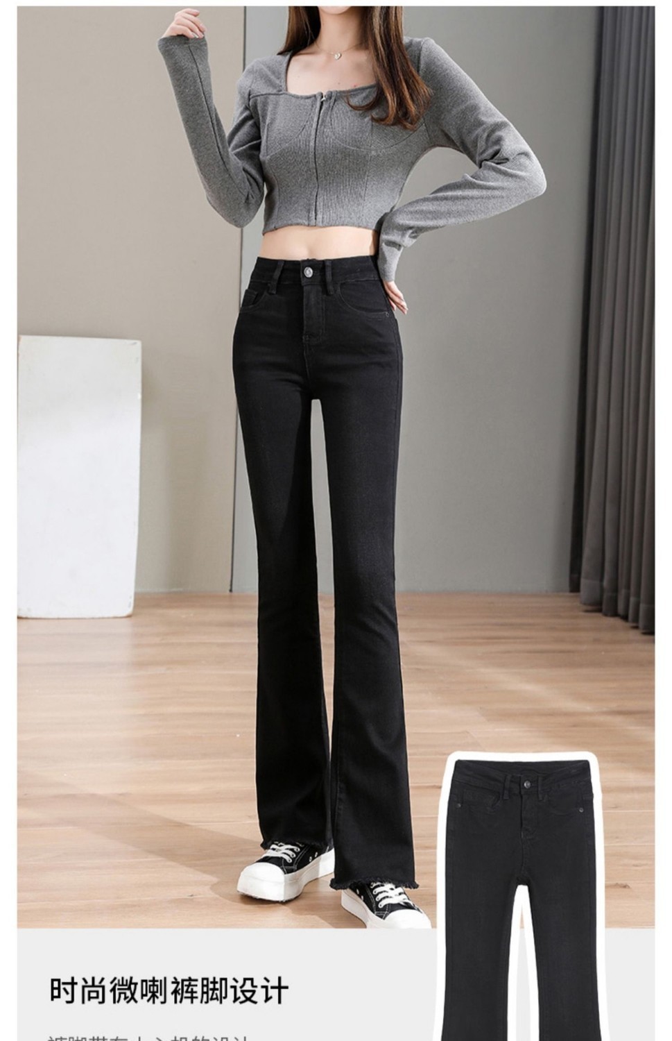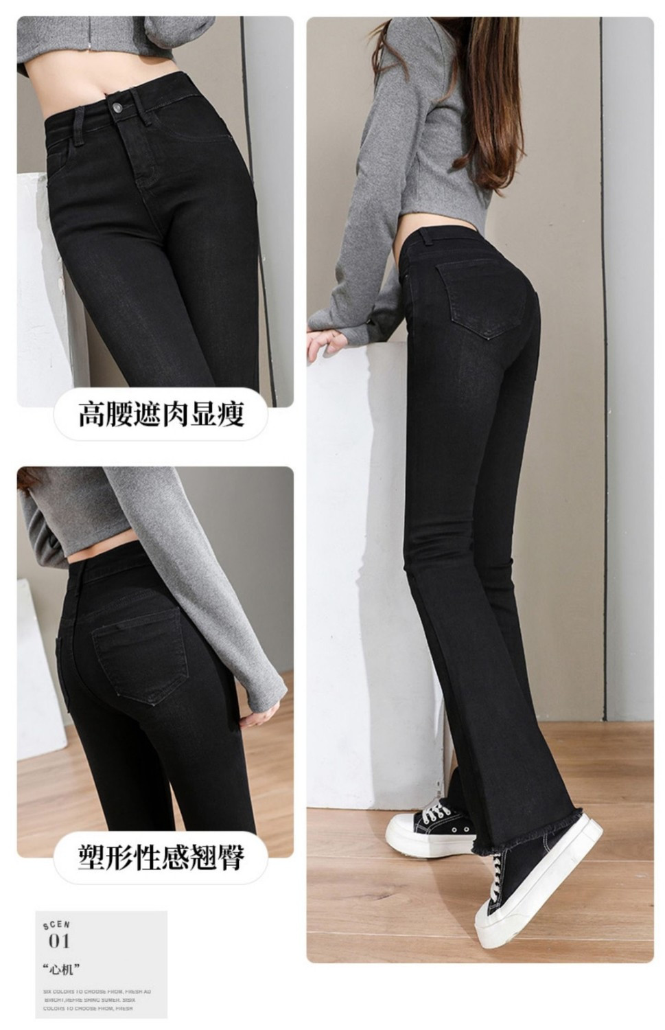 新款微喇叭牛仔裤女黑色高腰2023春秋季小个子弹力显瘦马蹄裤毛边