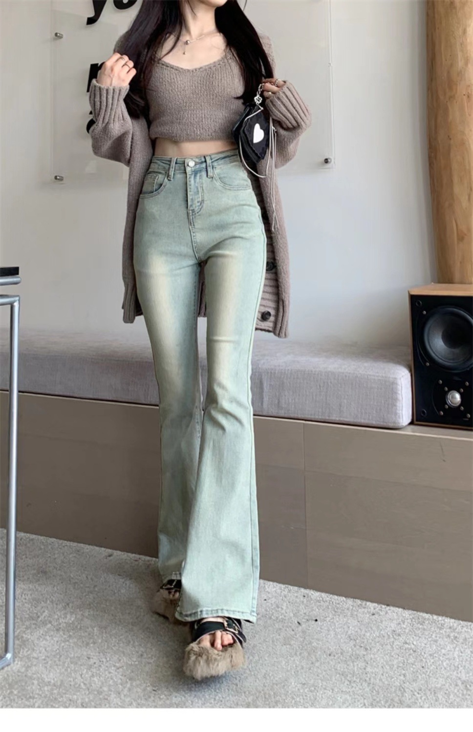 微喇牛仔裤女春秋季2023新款小个子水洗黄泥色马蹄裤高腰喇叭裤子