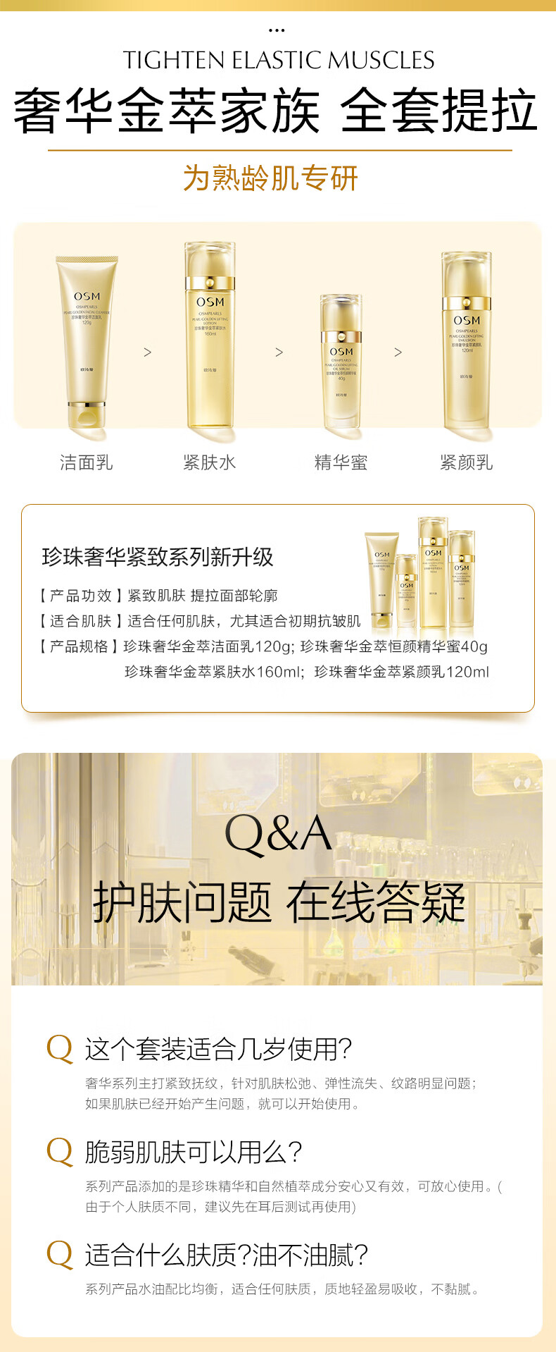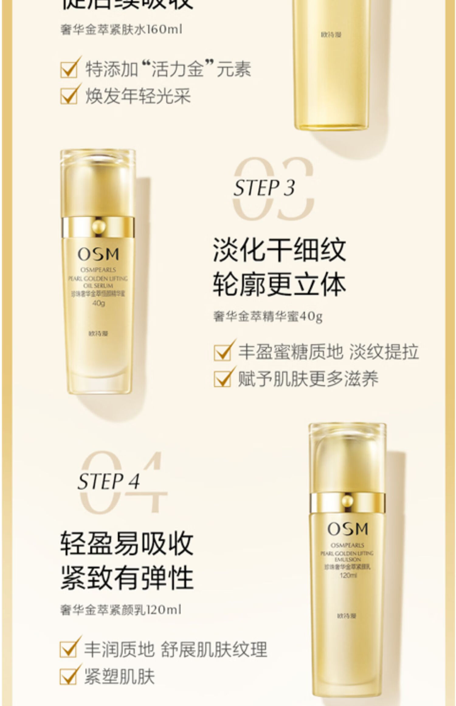 欧诗漫(OSM) 珍珠奢华金萃塑颜紧致套装四件套抗皱保湿水乳礼盒