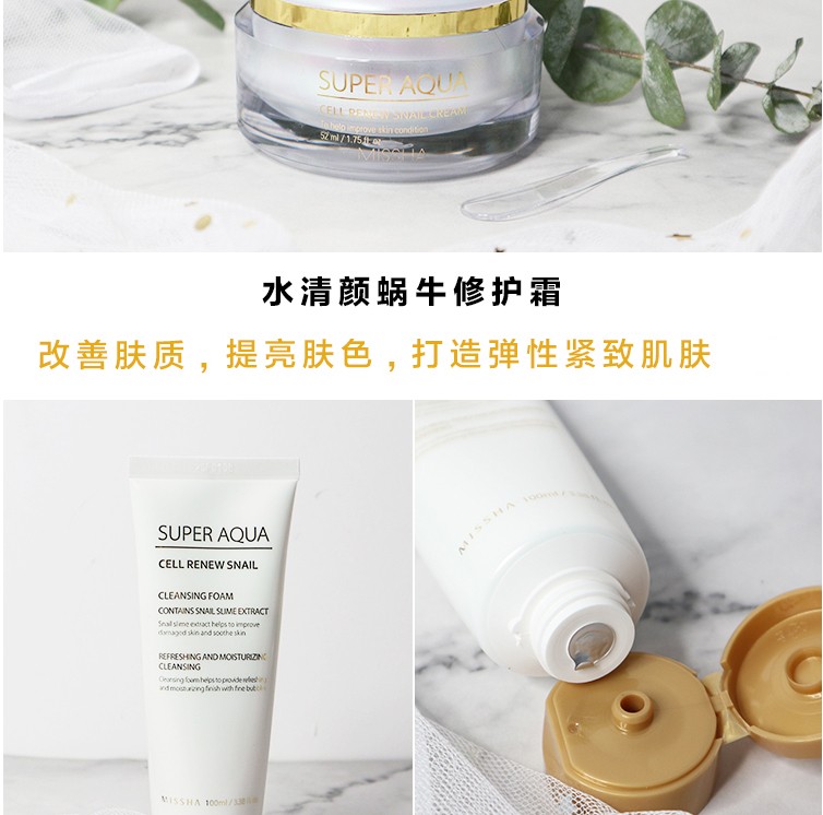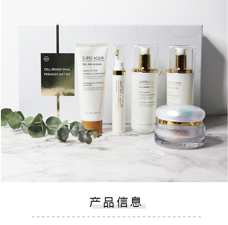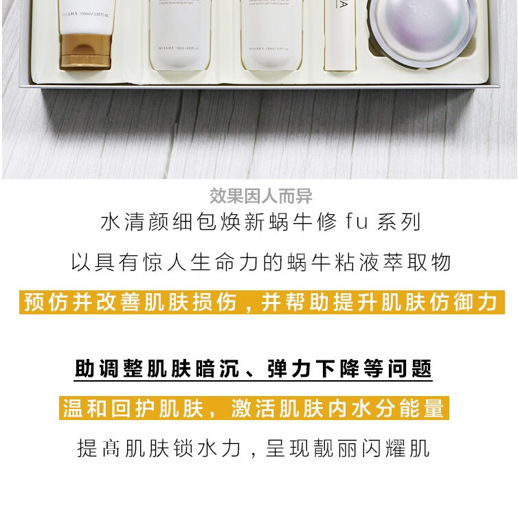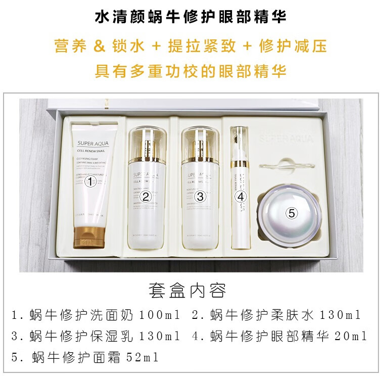 谜尚 水清颜蜗牛修护礼盒柔肤水乳液面霜洁面洗面奶睡眠面膜护肤品套装女补水保湿蜗牛精华男女化妆品