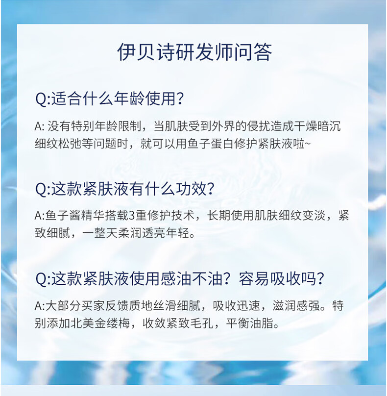 伊贝诗 爽肤水鱼子蛋白修护紧肤液补水保湿紧致收缩毛孔