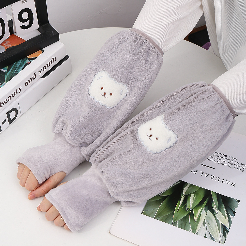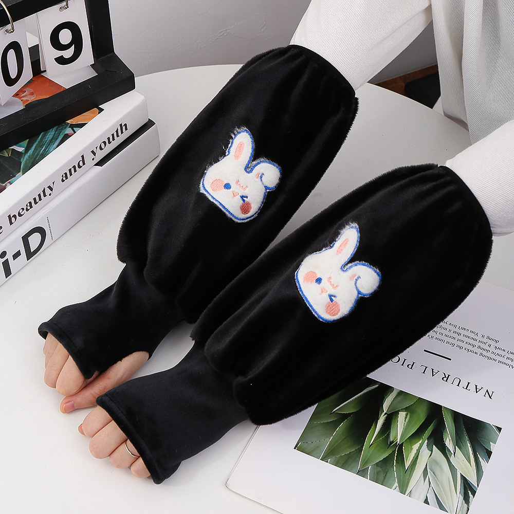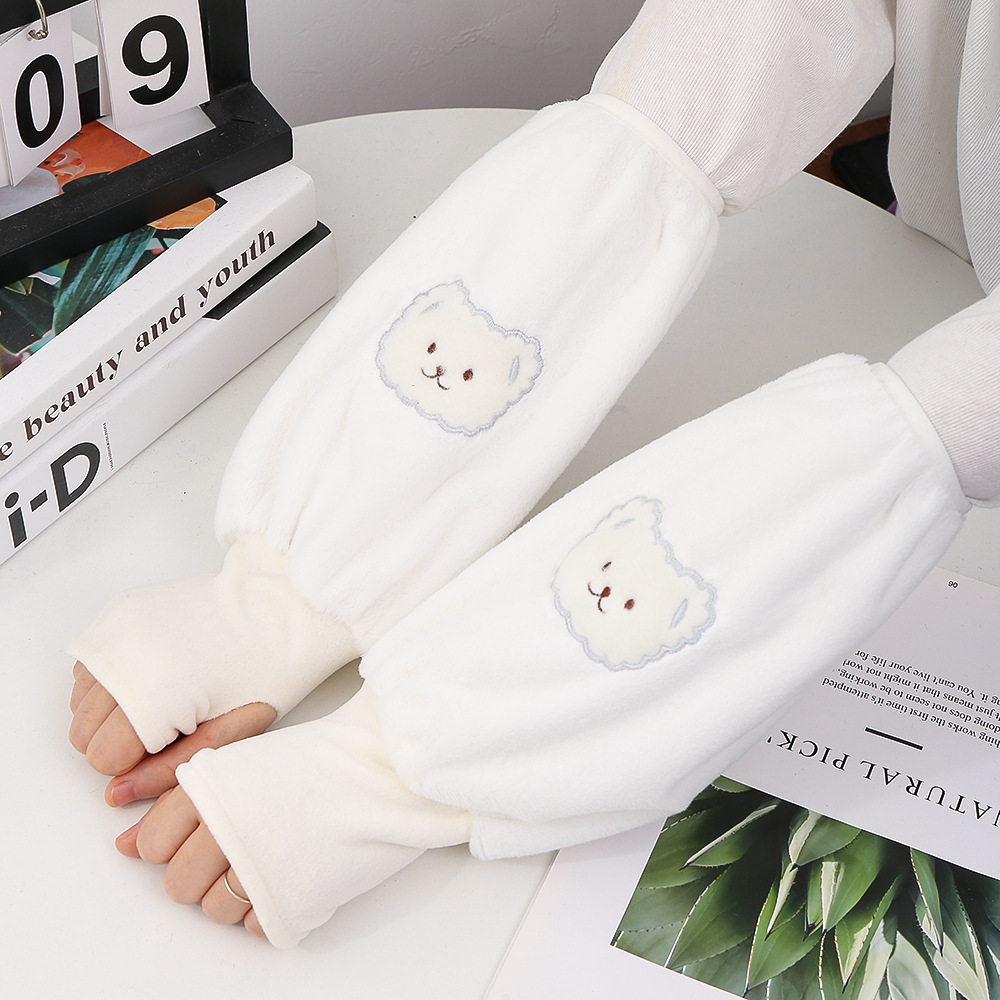 韩版袖套手套一体二合一女秋冬季套袖防脏暖手可爱护袖加厚保暖