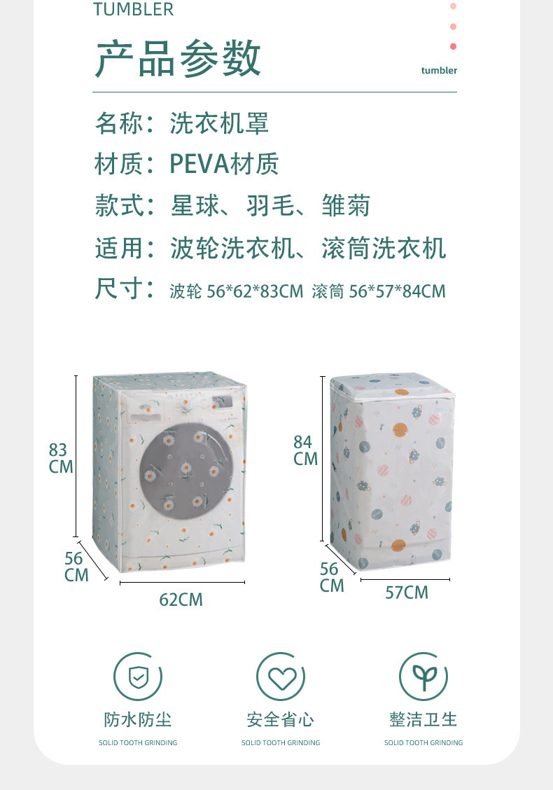 洗衣机罩拉链防灰罩PEVA防水洗衣机套防尘罩家用全自动波轮滚筒式