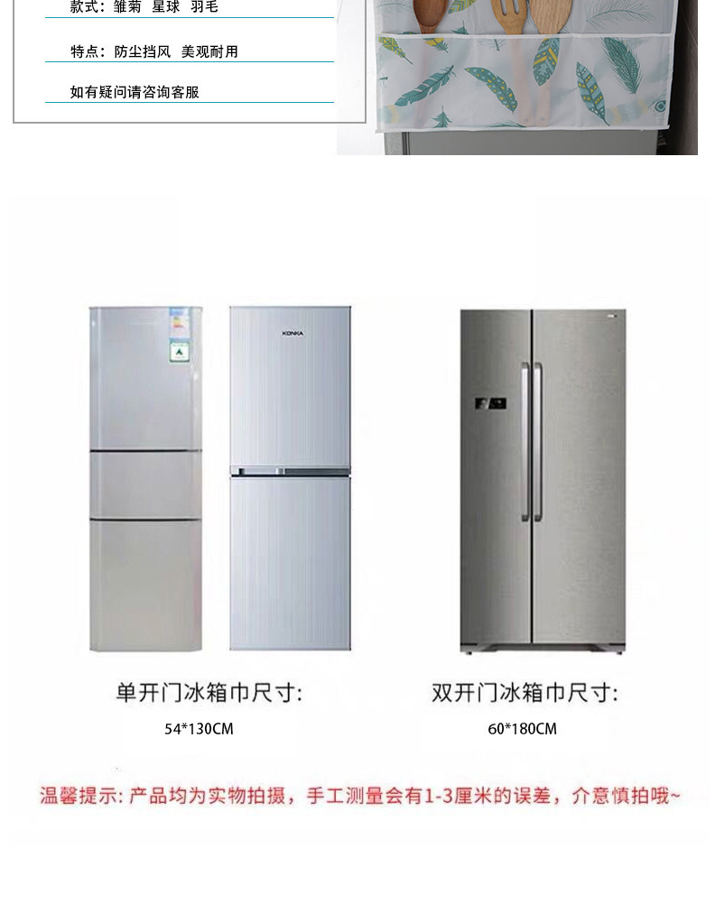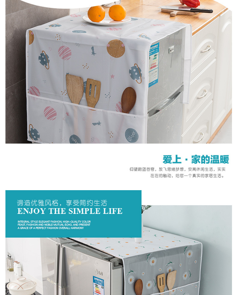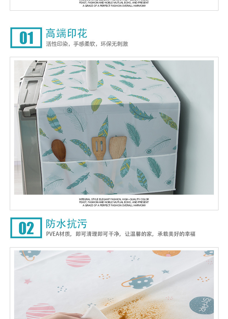 PVEA小清新卡通冰箱防尘罩防水盖巾冰箱防尘布盖布保护套微波炉罩