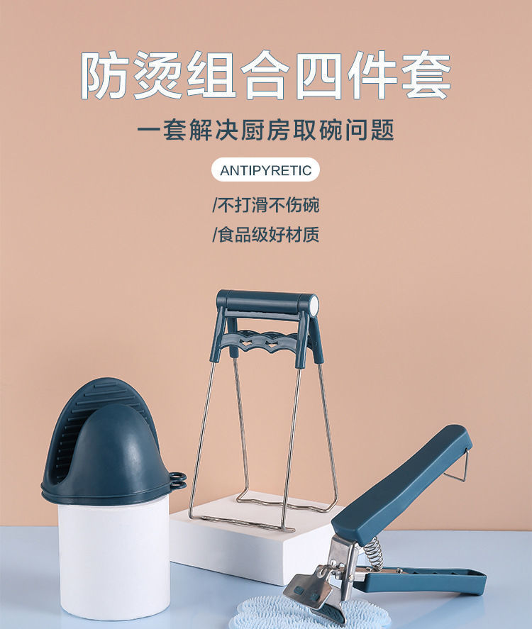 不锈钢防烫夹四件套硅胶防滑碗碟夹厨房多功能取碗夹隔热防烫套装