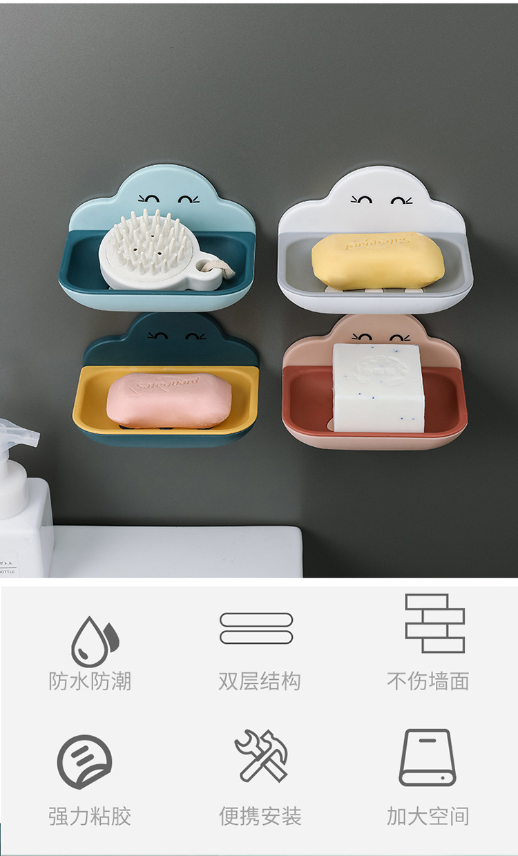 云朵肥皂盒卫生间创意置物架壁挂浴室厕所洗手间免打孔双层沥水