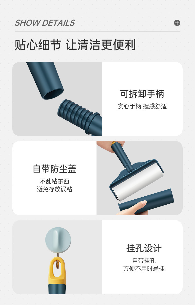 撞色粘毛器可撕式粘毛器筒便携式粘毛器黏衣物宠物粘毛滚筒除毛器