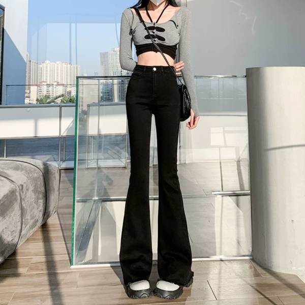 黑色微喇叭牛仔裤女高腰显瘦修身2023年春秋季新款马蹄裤子拖地裤