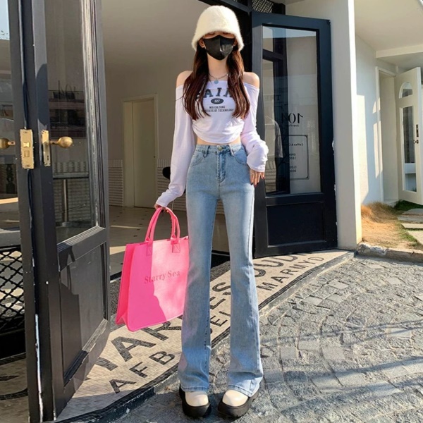高腰微喇牛仔裤女2023年春秋新款马蹄裤小个子浅色显瘦拖地喇叭裤
