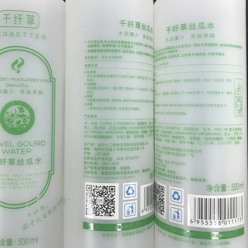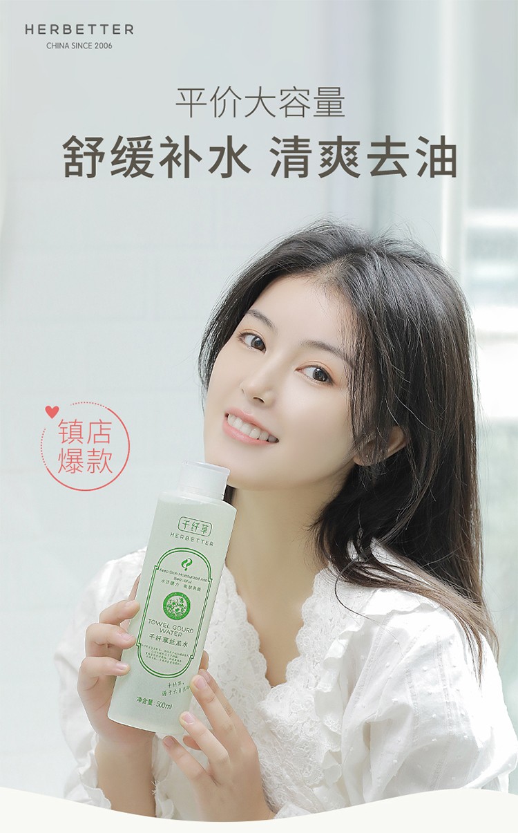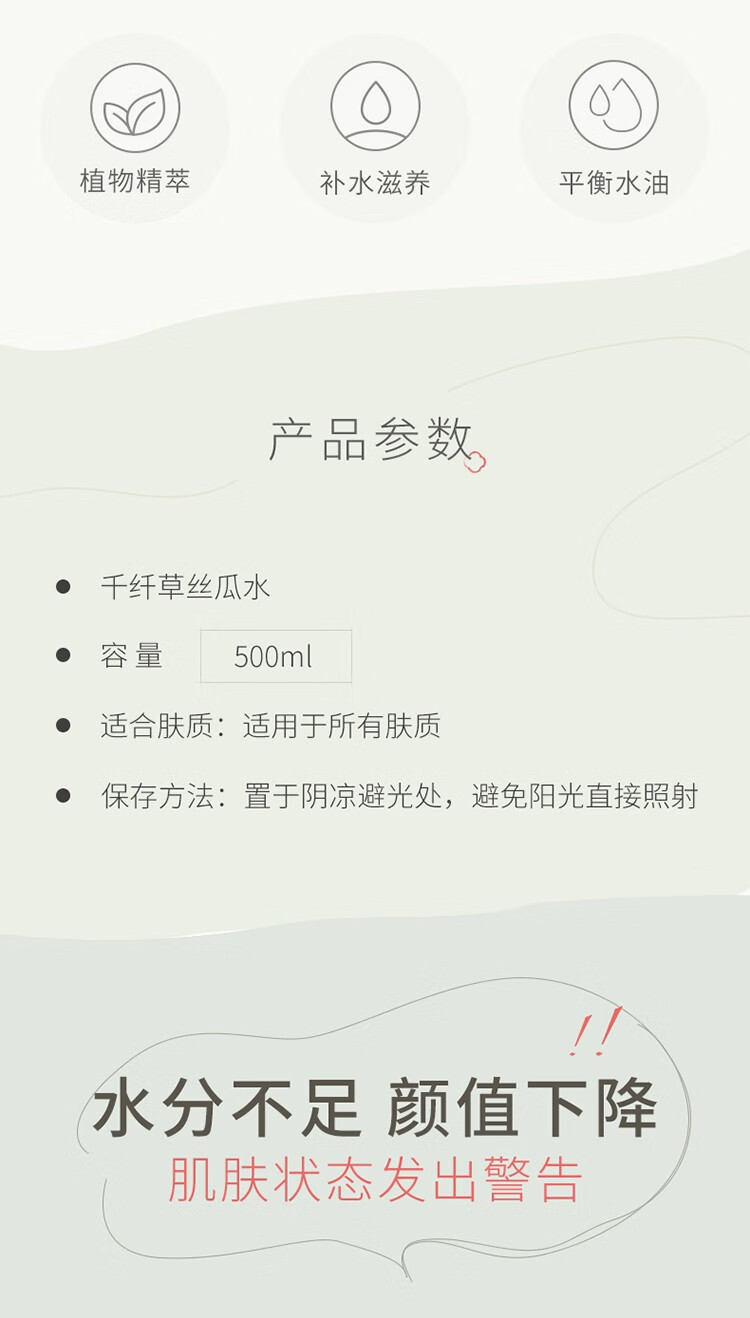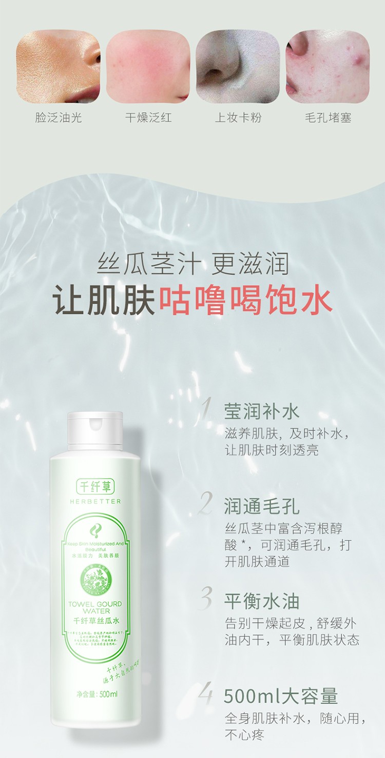 千纤草 丝瓜水爽肤水补水保湿收细毛孔提亮肤色500ml