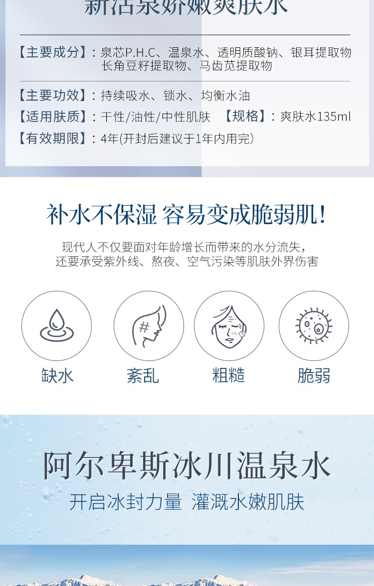 温碧泉(WETHERM)爽肤水女 细致毛孔 新活泉娇嫩爽肤水135ml(补水保湿)