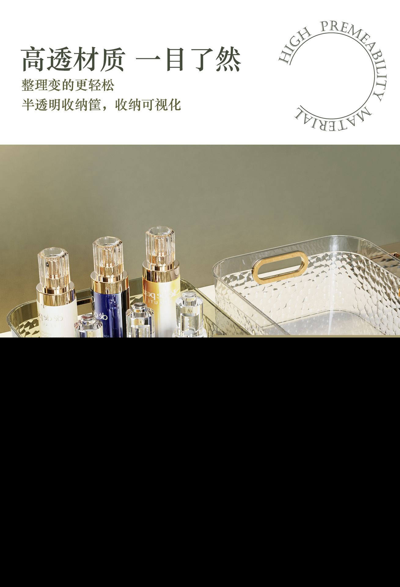 轻奢化家用亚克力透明收纳盒护肤品面膜收纳筐梳妆台杂物整理盒