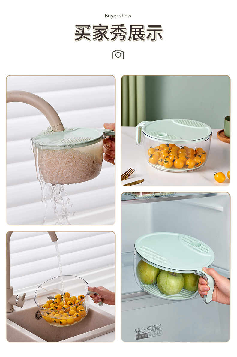 免手洗淘米洗菜篮水果蔬菜沥水篮冰箱保鲜盒洗米篮洗菜篮懒人神器